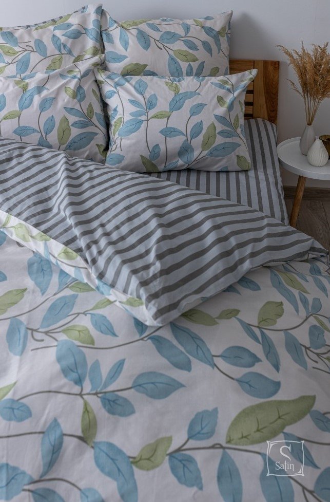 Комплект ТЕП Soft dreams Spring Basil с рисунком листья на белом фоне, изготовлен из высококачественного ранфорса.