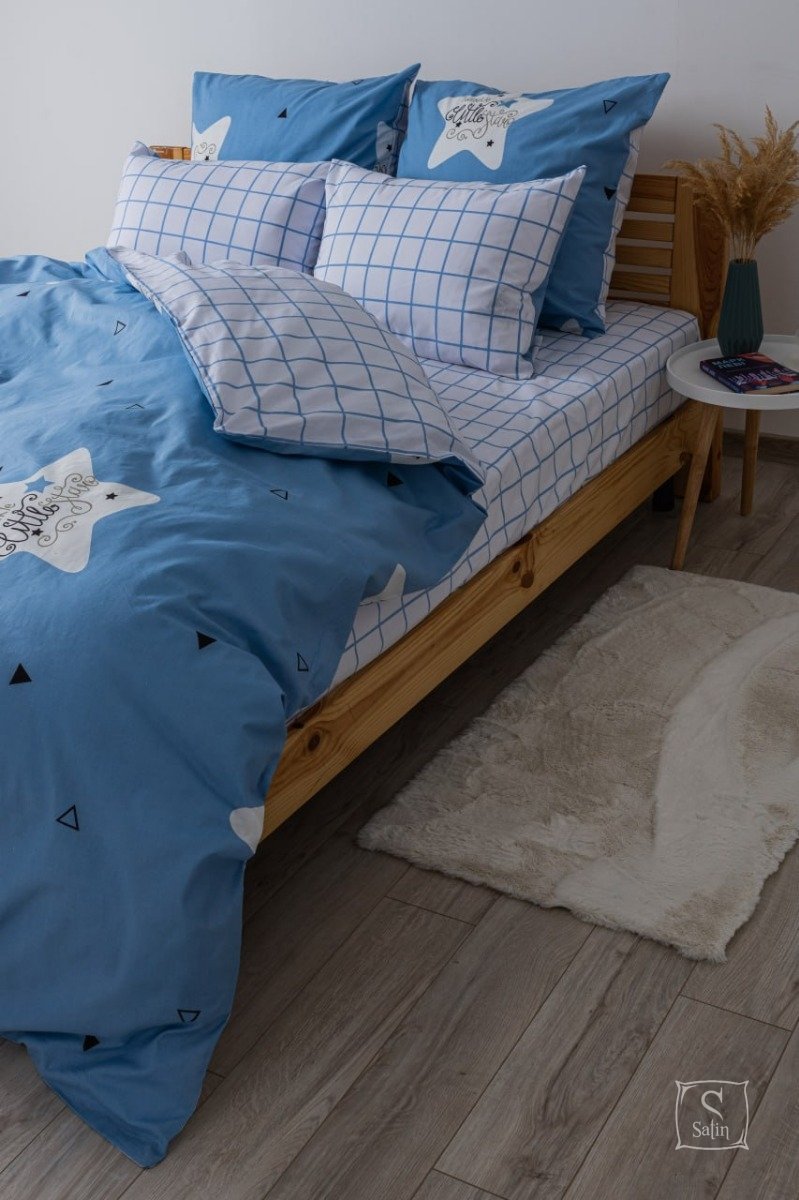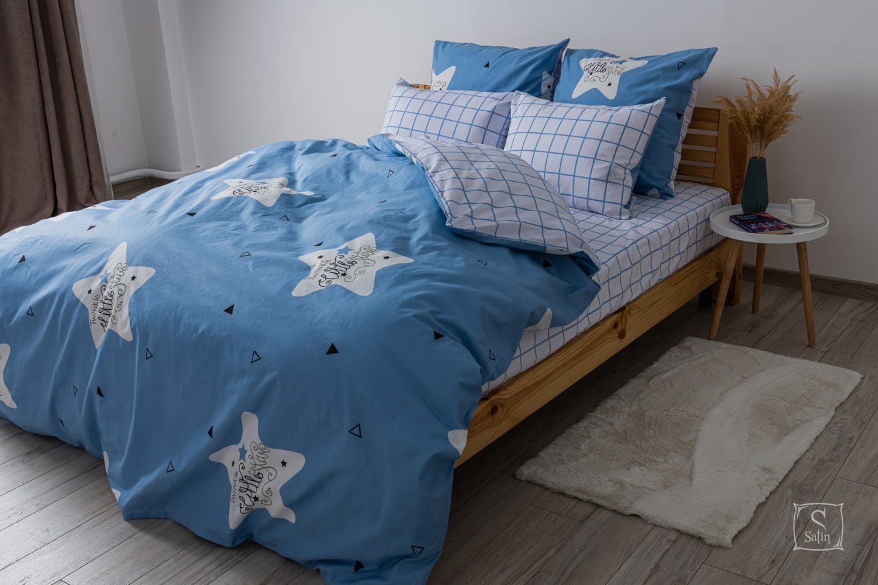 Комплект ТЕП Twinkle Stars с рисунком клетка и звезды на голубом фоне.