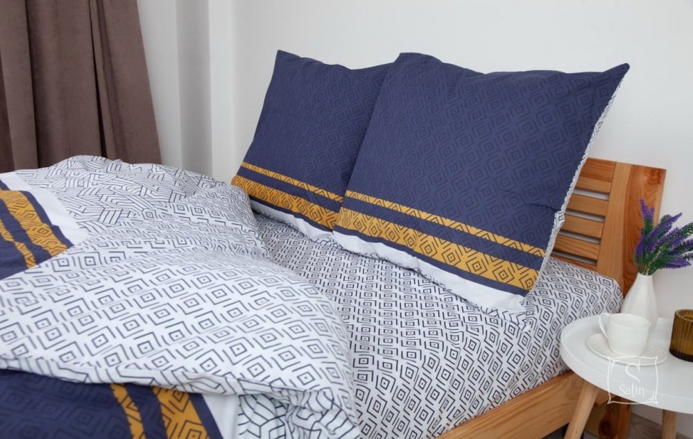 Комплект Statly выполнен в синих тонах, с оригинальным узором геометрия.