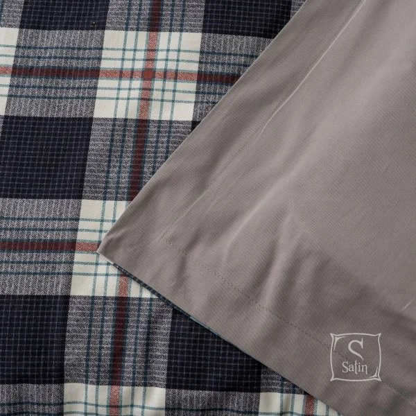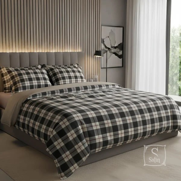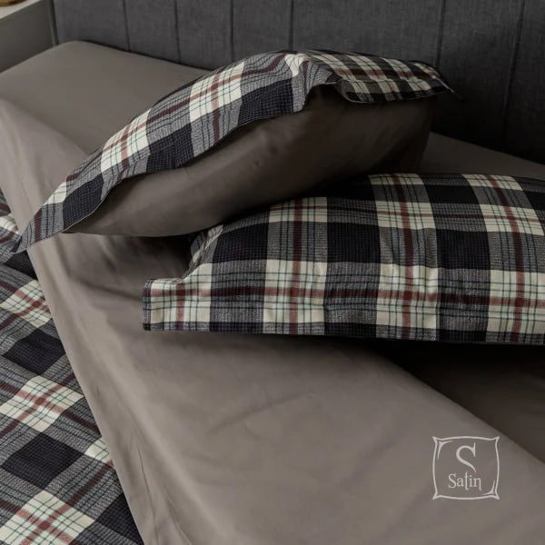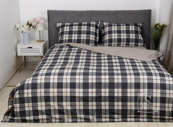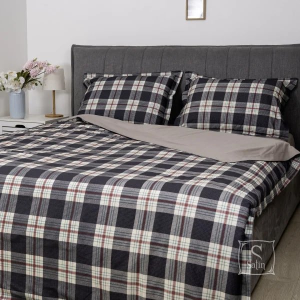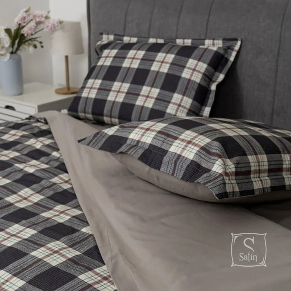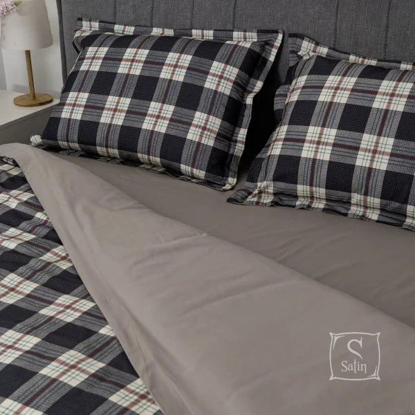 • Комплект Brushed Warm Cotton W-11 выполнен в черно-серых тонах в клетку.