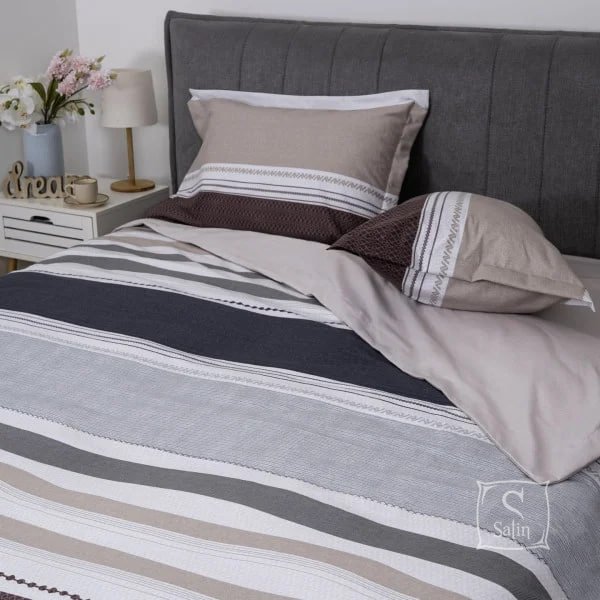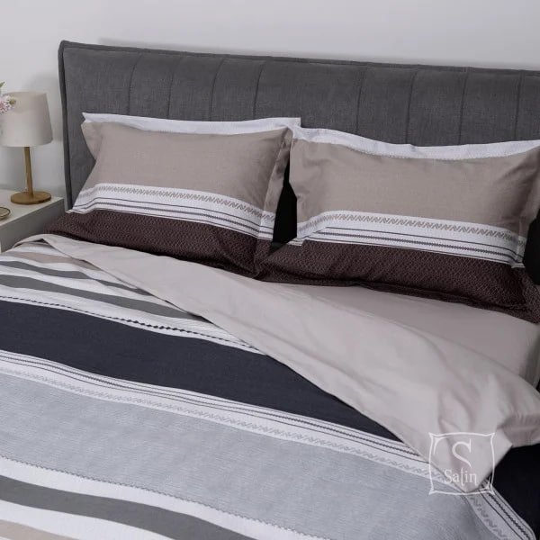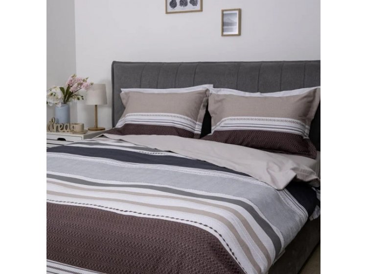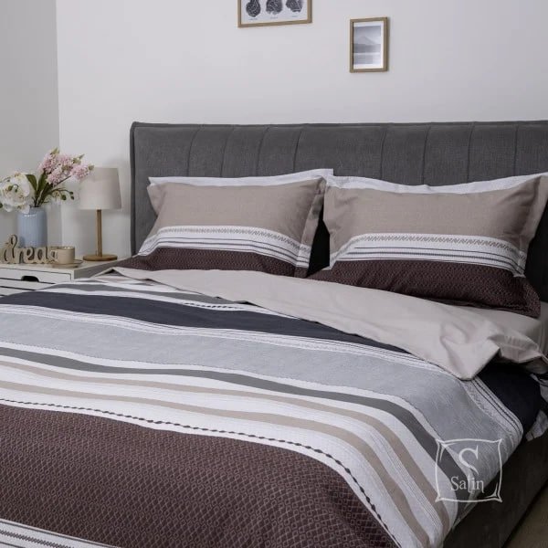 • Комплект Brushed Warm Cotton W-12 выполнен в бежевых тонах в полоску.