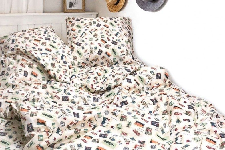 Постельное белье Viluta из ранфорса. Модель 20125 выполнена в кремовых тонах с оригинальным рисунком на тему Лондона.