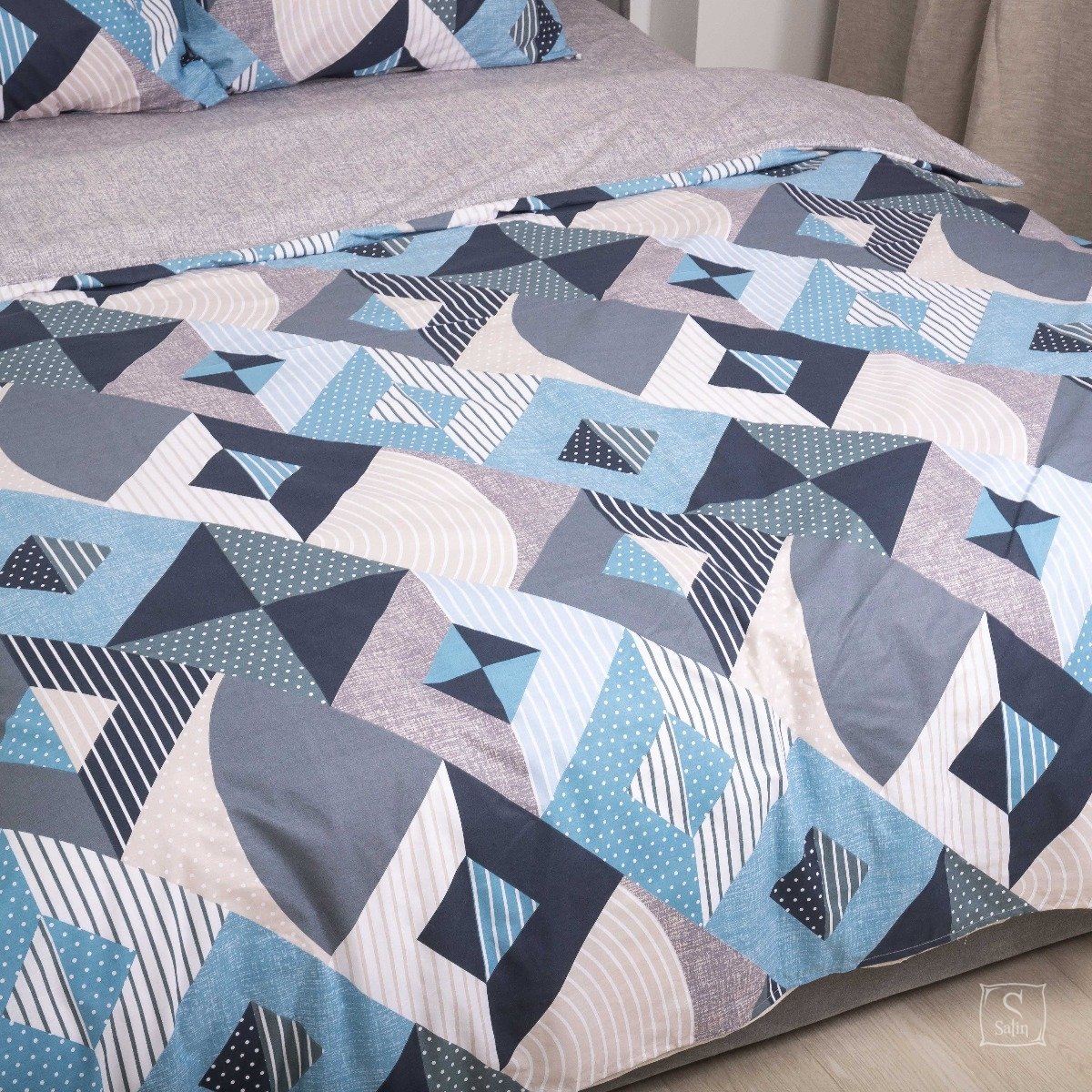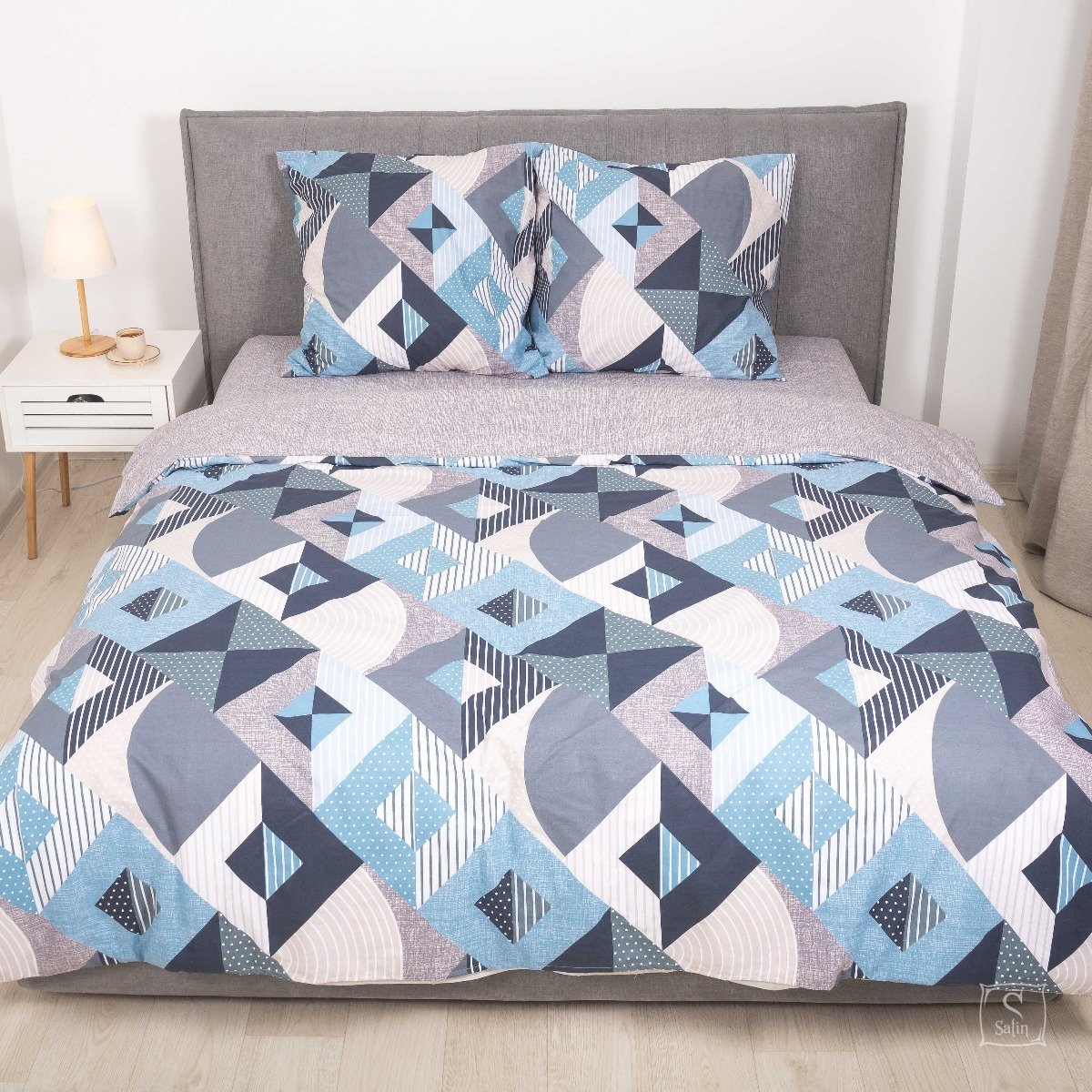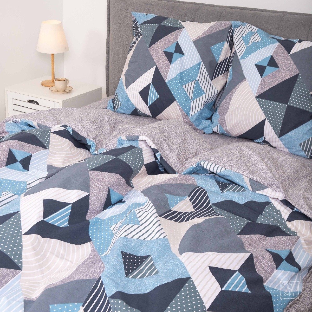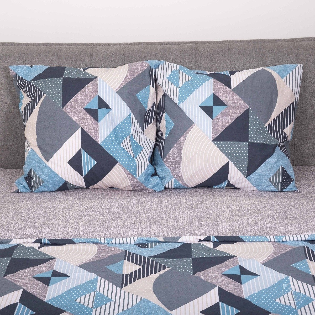 Постельное белье Viluta из ранфорса. Модель 23234 в серо-синем цвете с принтом геометрия.