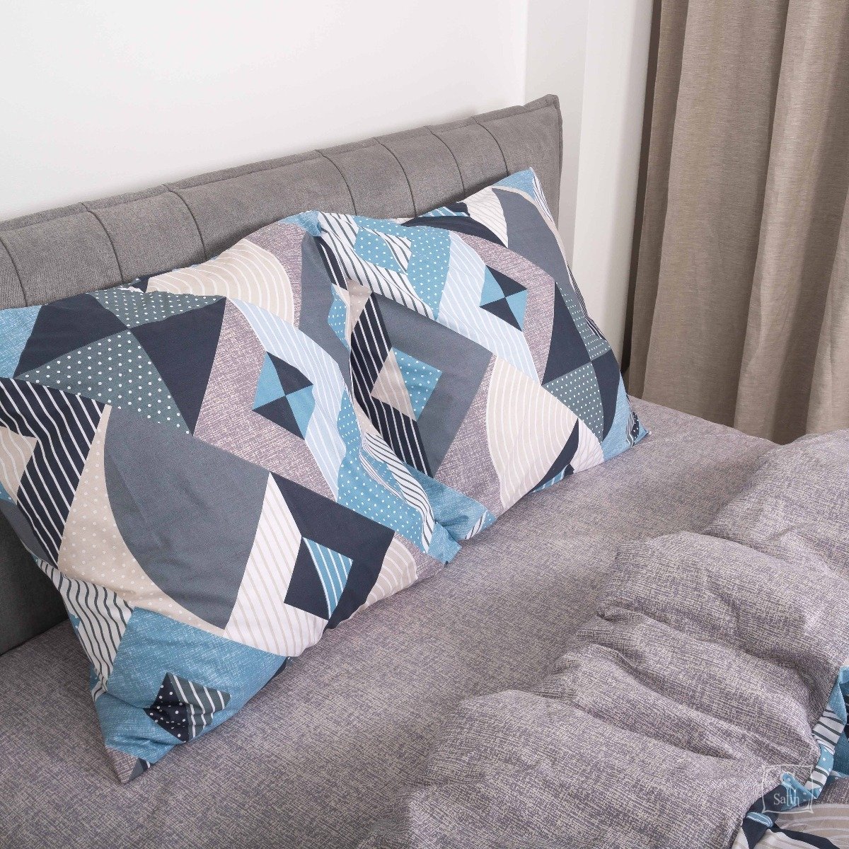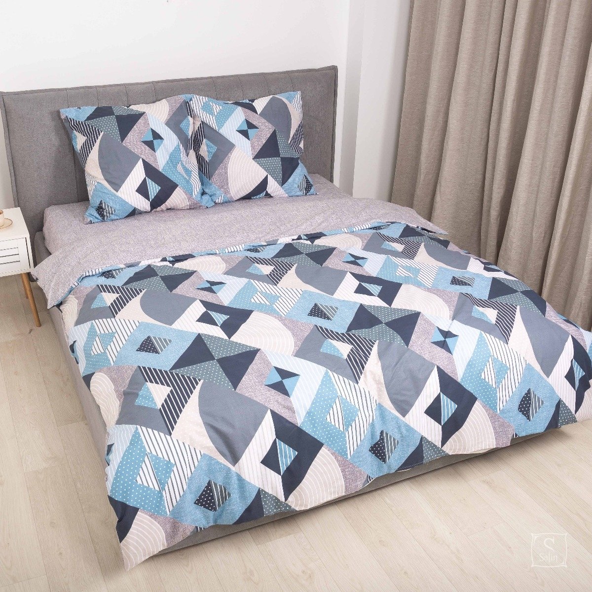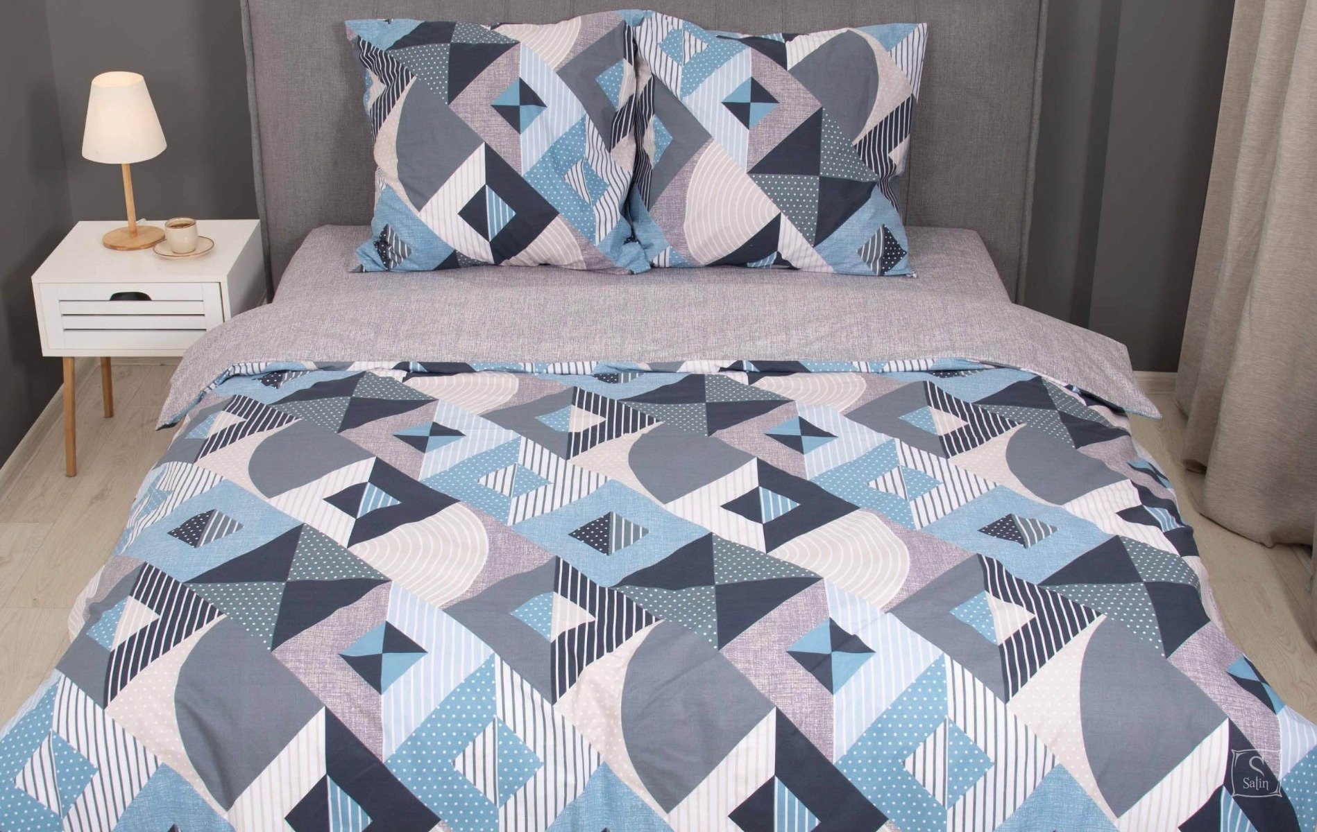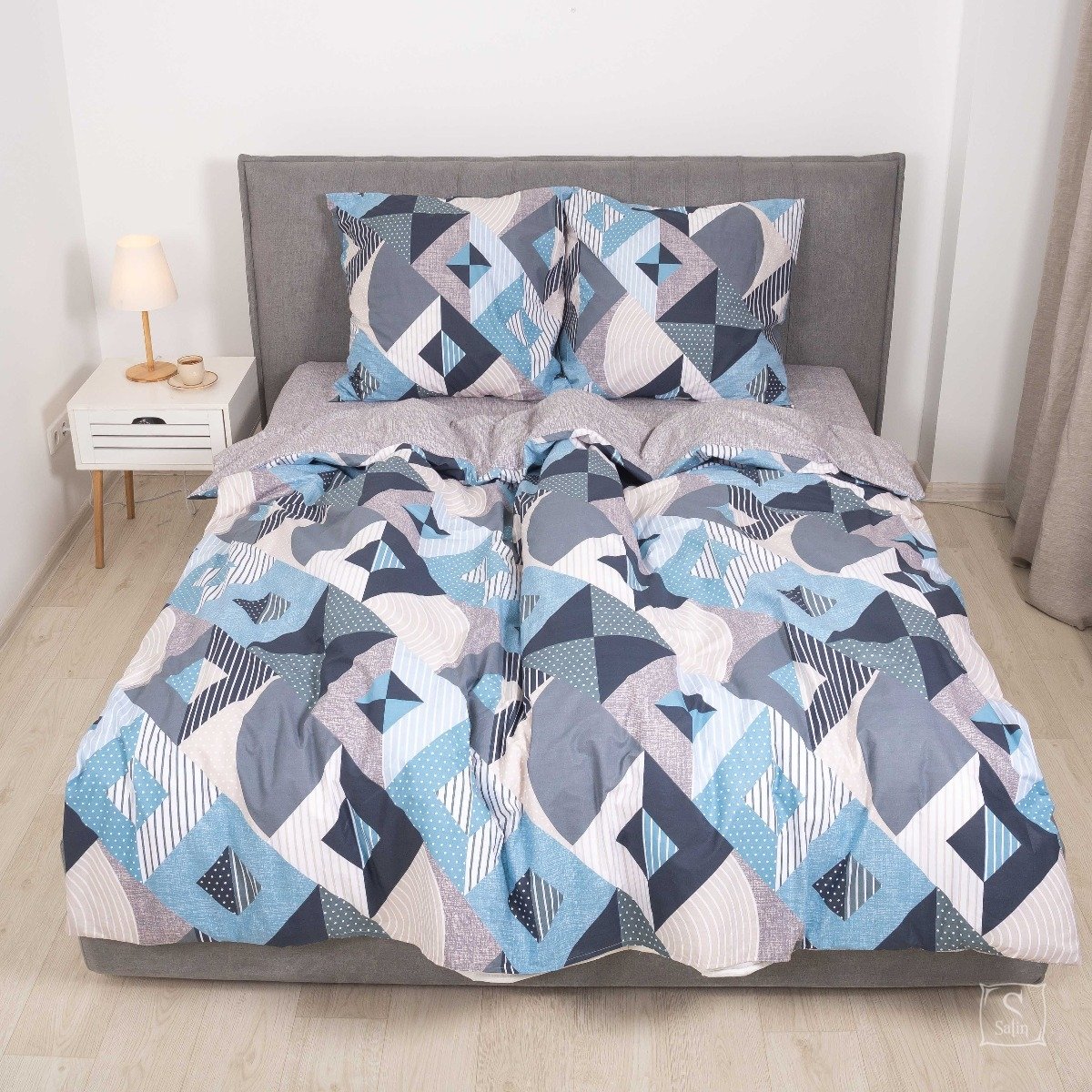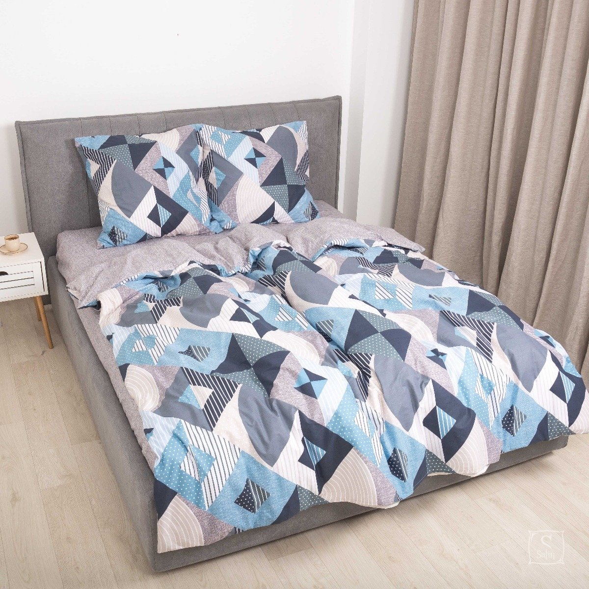 Постельное белье Viluta из ранфорса. Модель 23234 в серо-синем цвете с принтом геометрия.