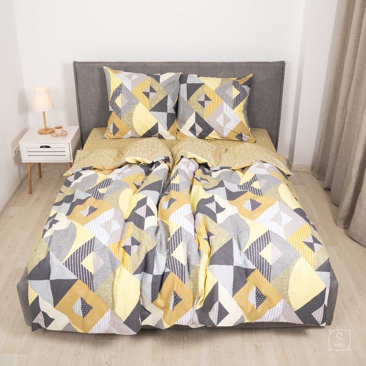Постельное белье Viluta из ранфорса. Модель 23235 в серо-бежевом цвете с принтом геометрия.