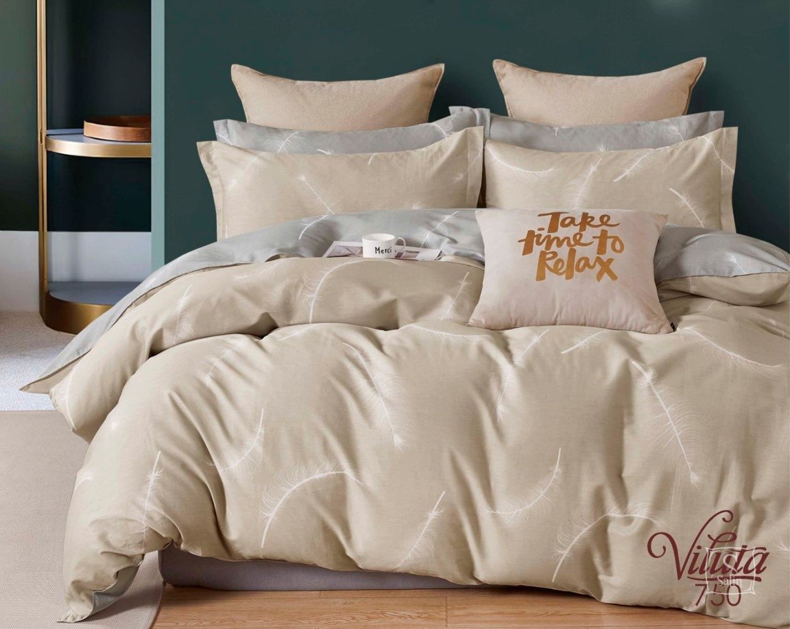 Постельное белье Viluta 750 в бежево-серых тонах с рисунком перья предлагает вам уют и элегантность.