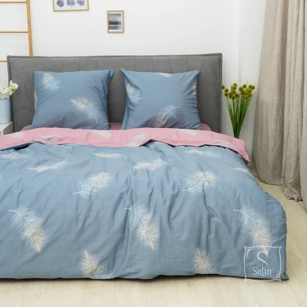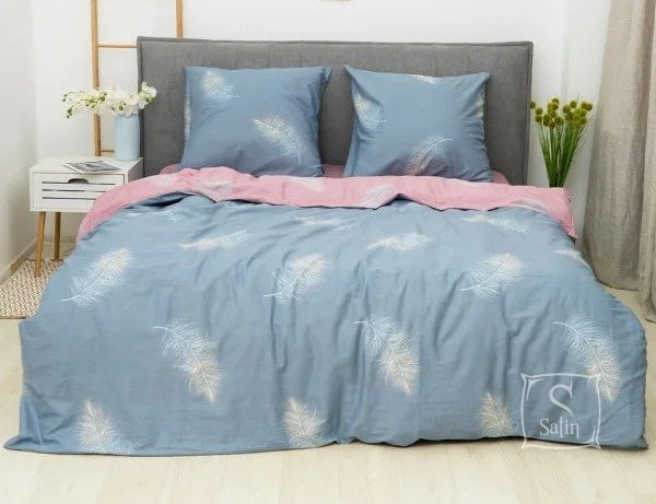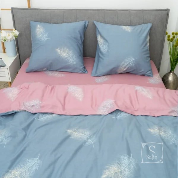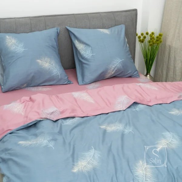 Постельное белье Viluta 787 в сине-розовых тонах  с принтом перышка предлагает вам уют и элегантность.