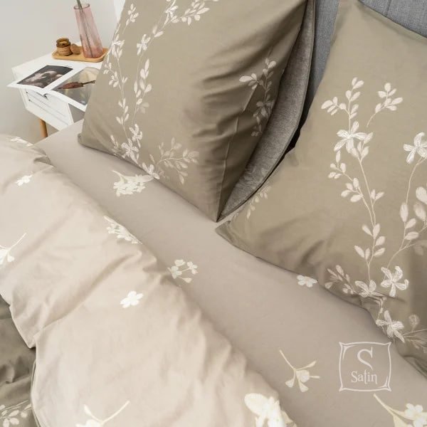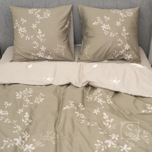Постельное белье Viluta 791 в коричнево-бежевых тонах с цветочным принтом предлагает вам уют и элегантность.