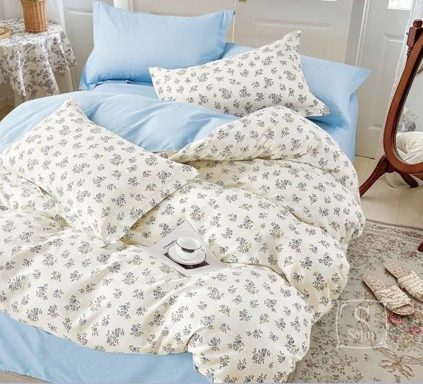 Постельное белье Viluta 799 в бело-голубых тонах  с цветочным принтом предлагает вам уют и элегантность.