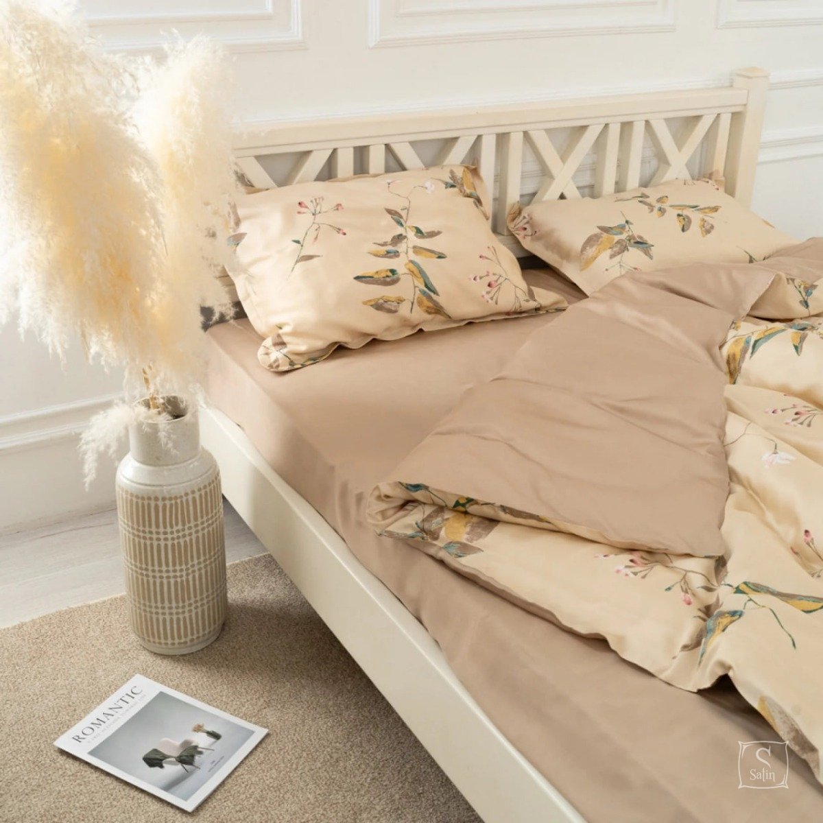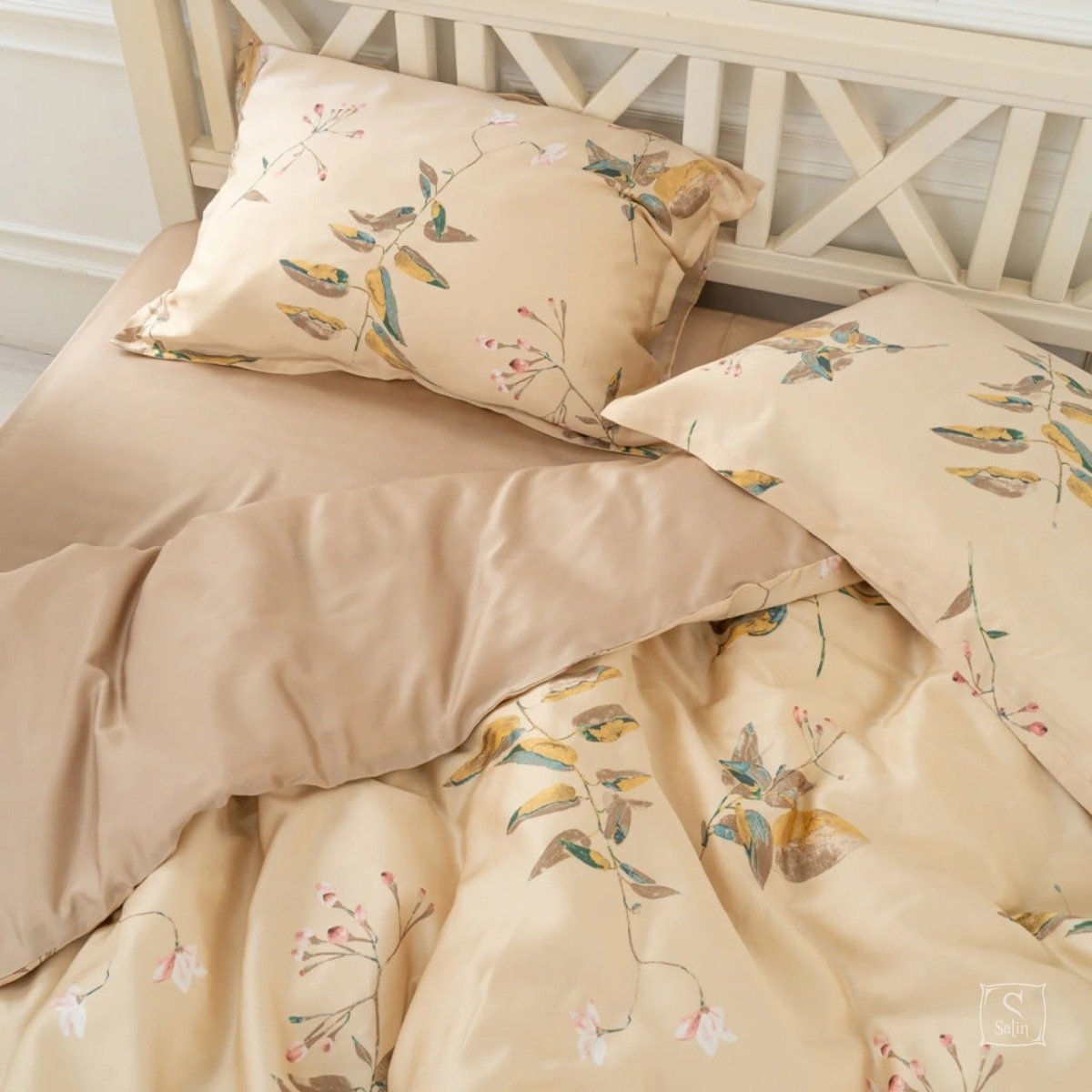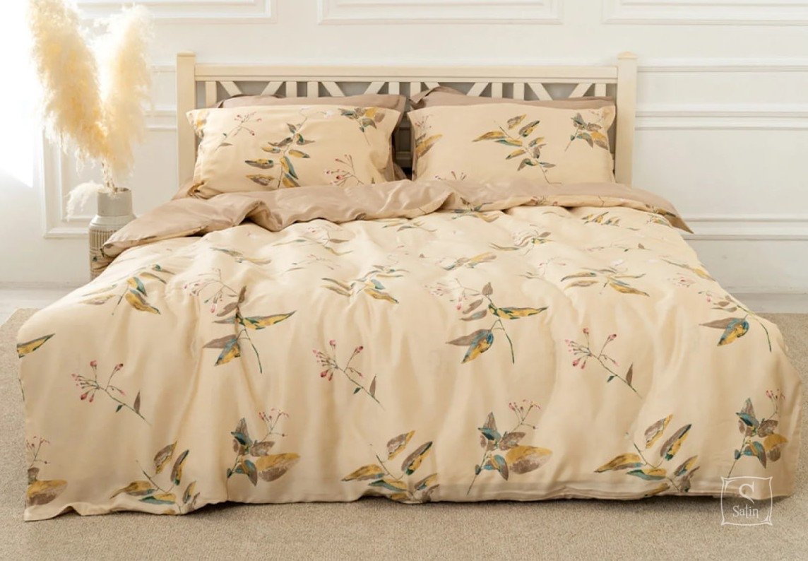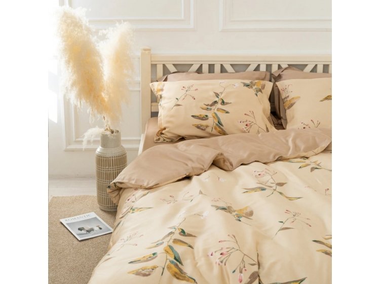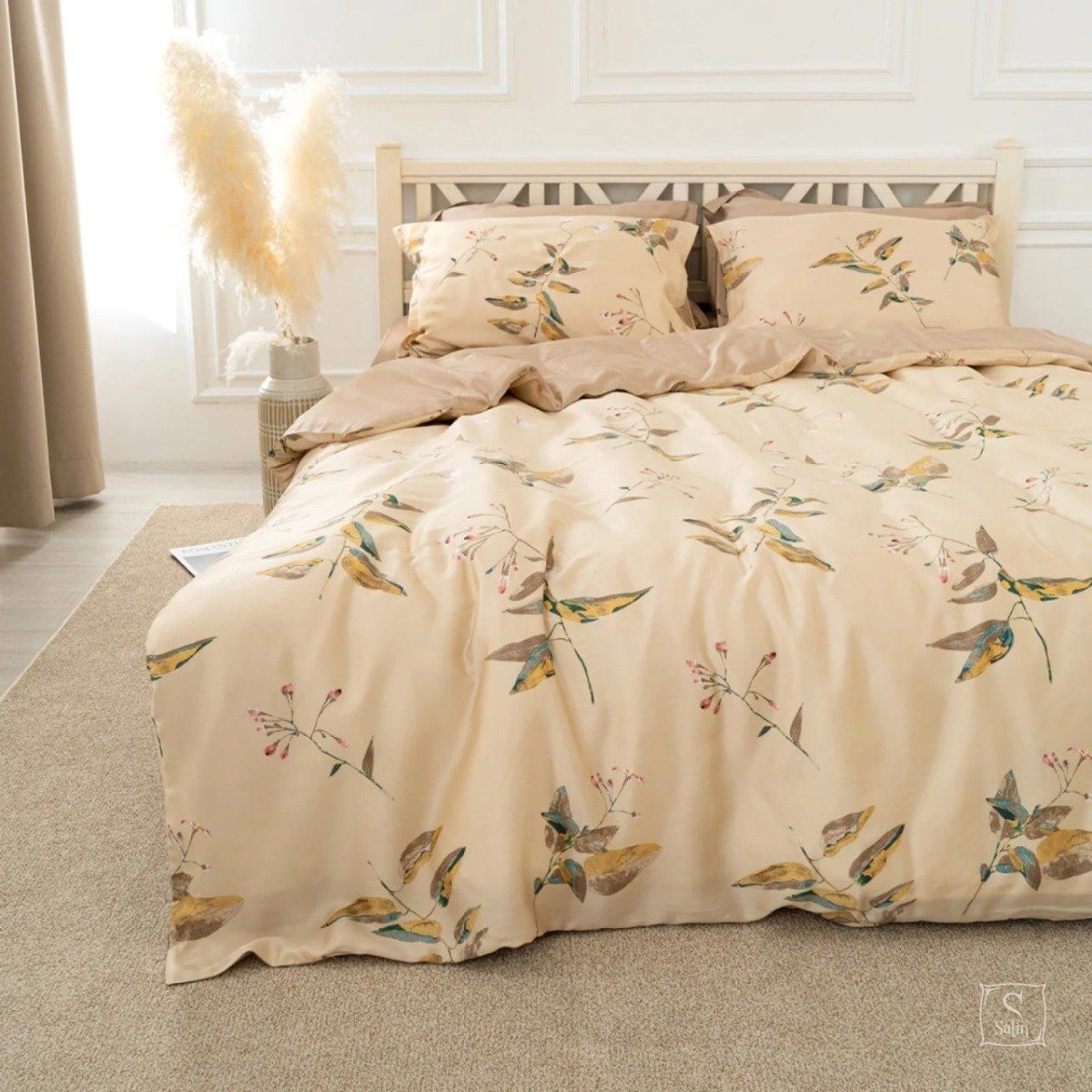 Комплект Тенсел Т-04 выполнен в бежевых тонах с растительным узором.
