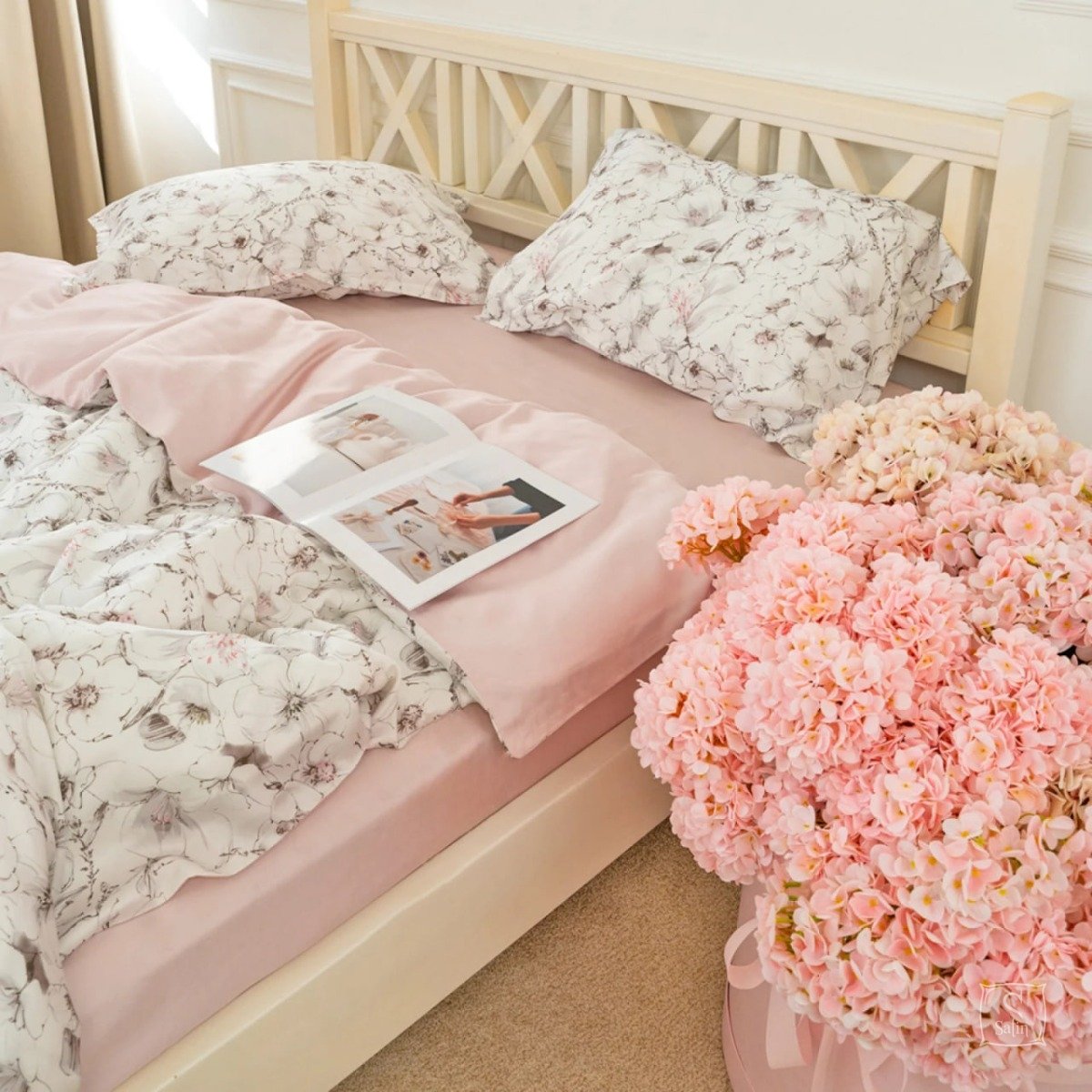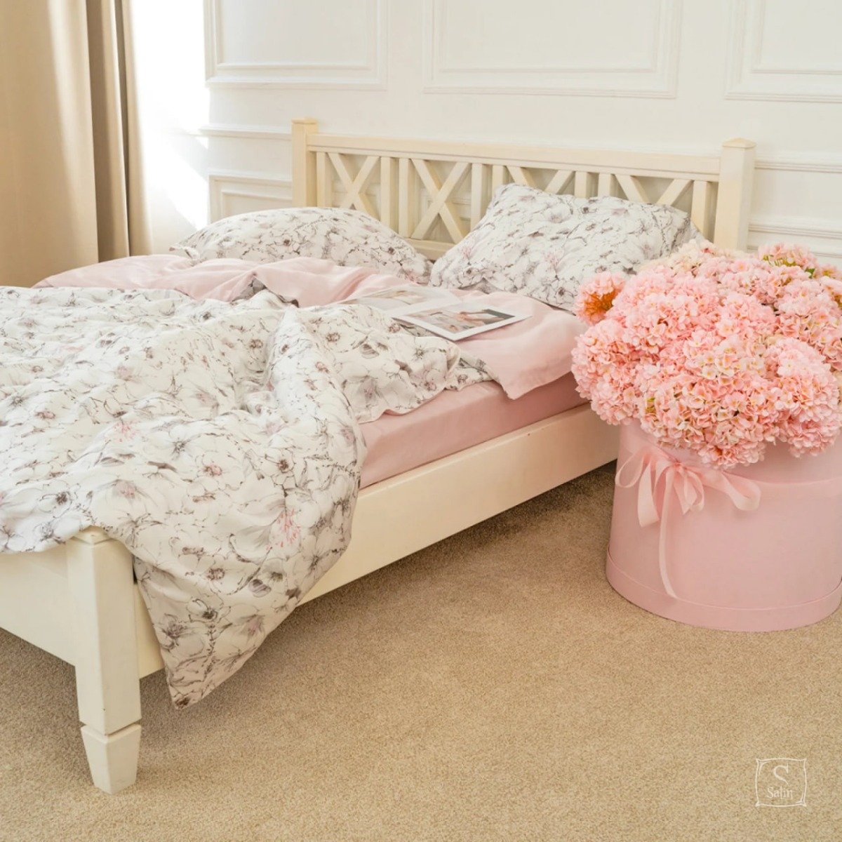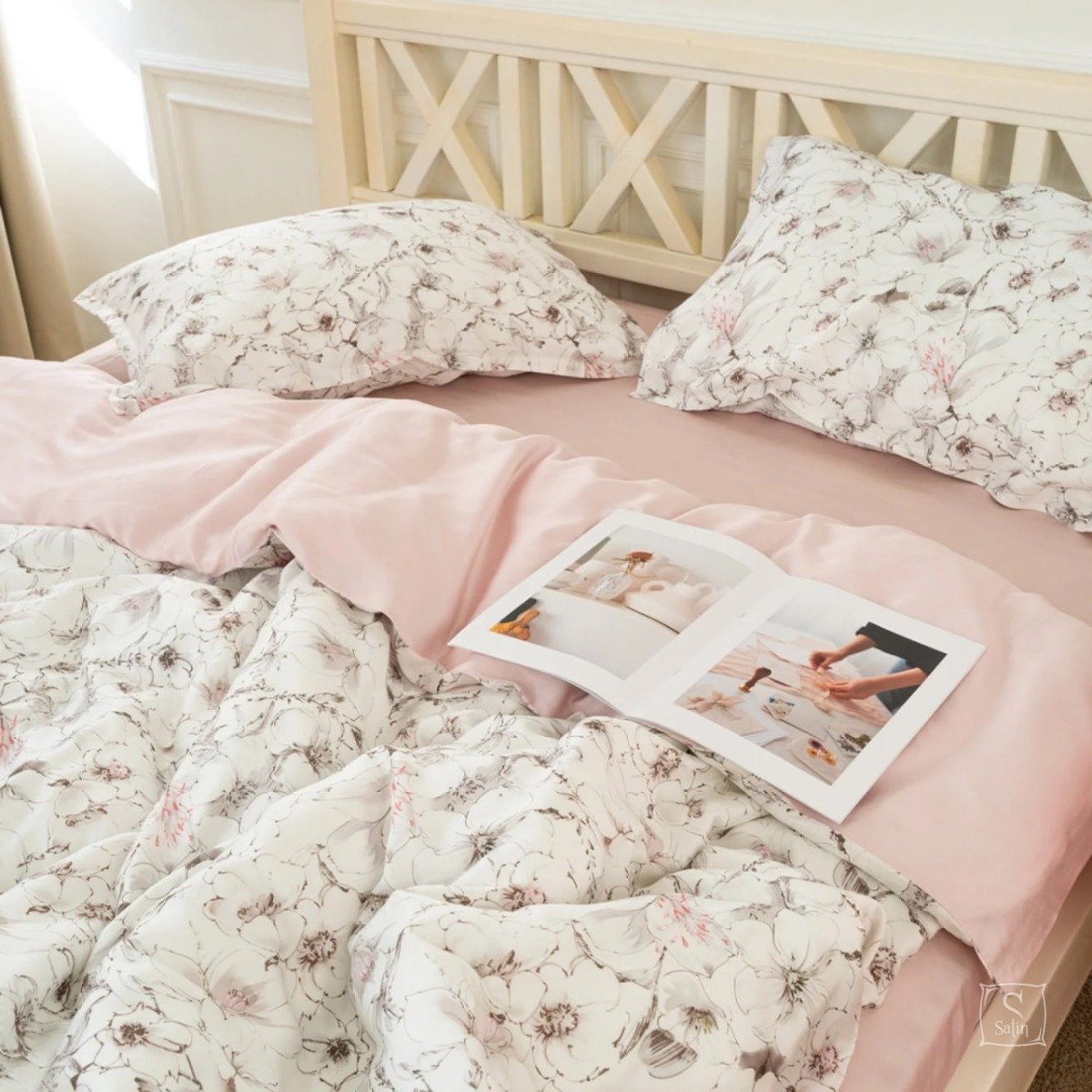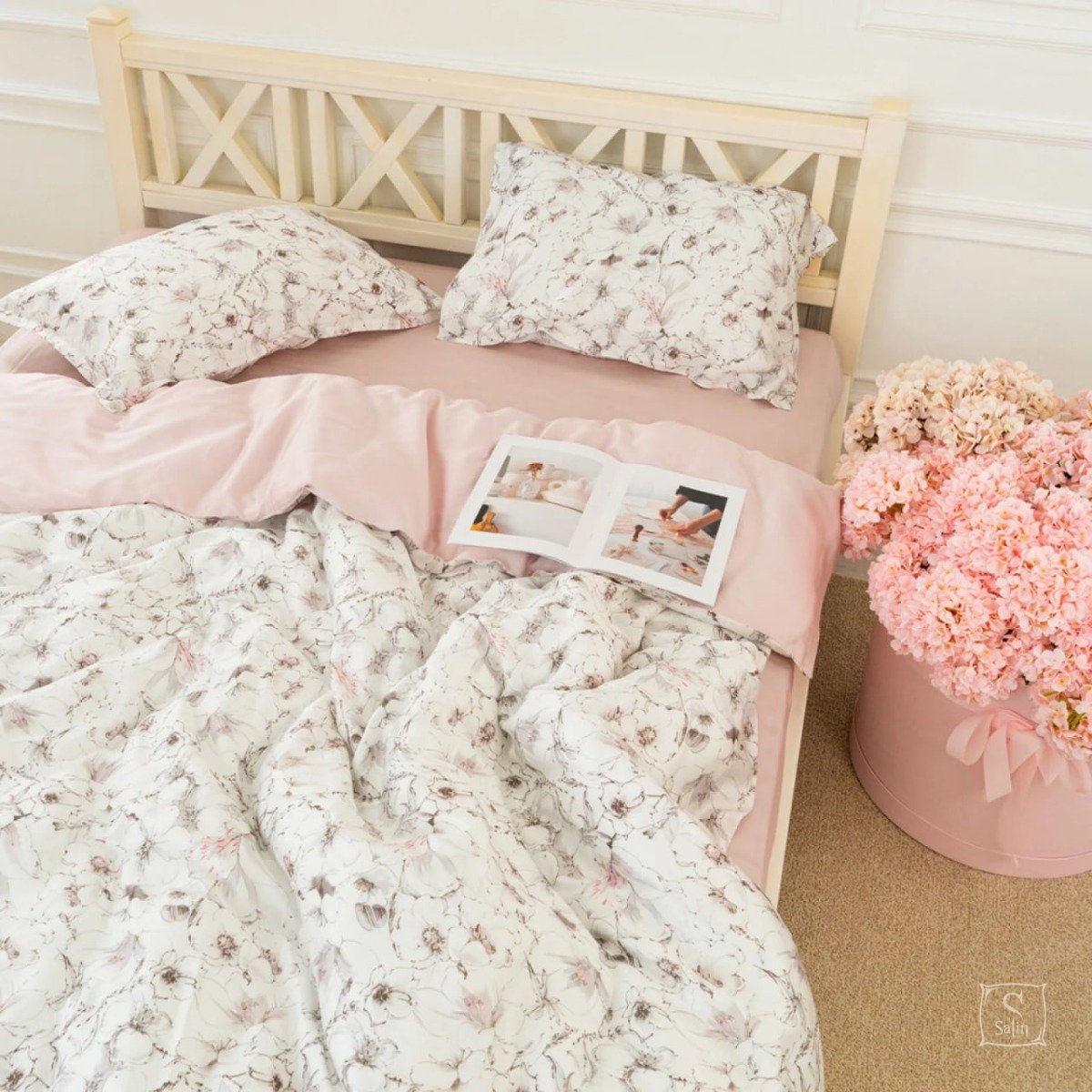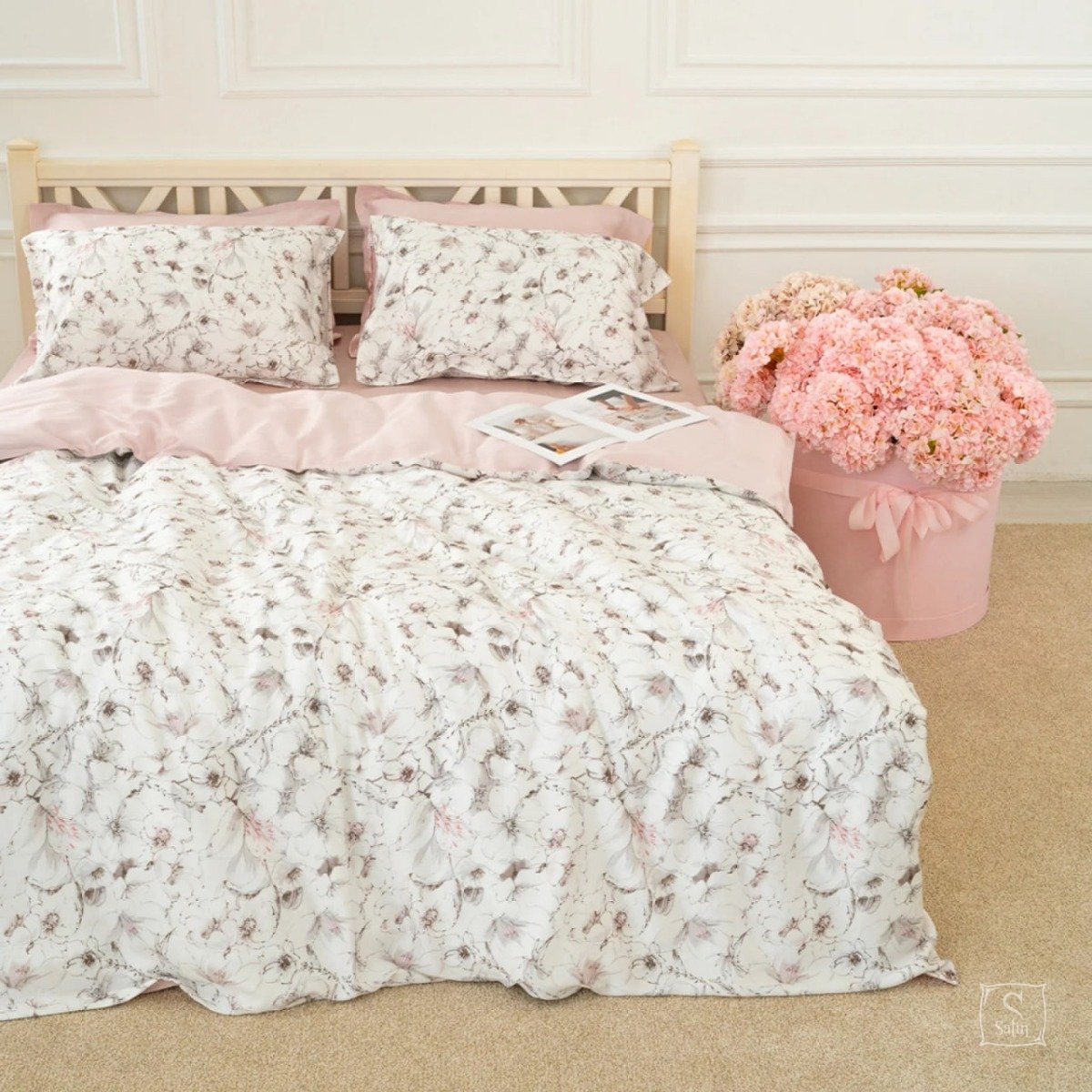 Комплект Тенсел Т-05 выполнен в розовых тонах с цветочным узором.