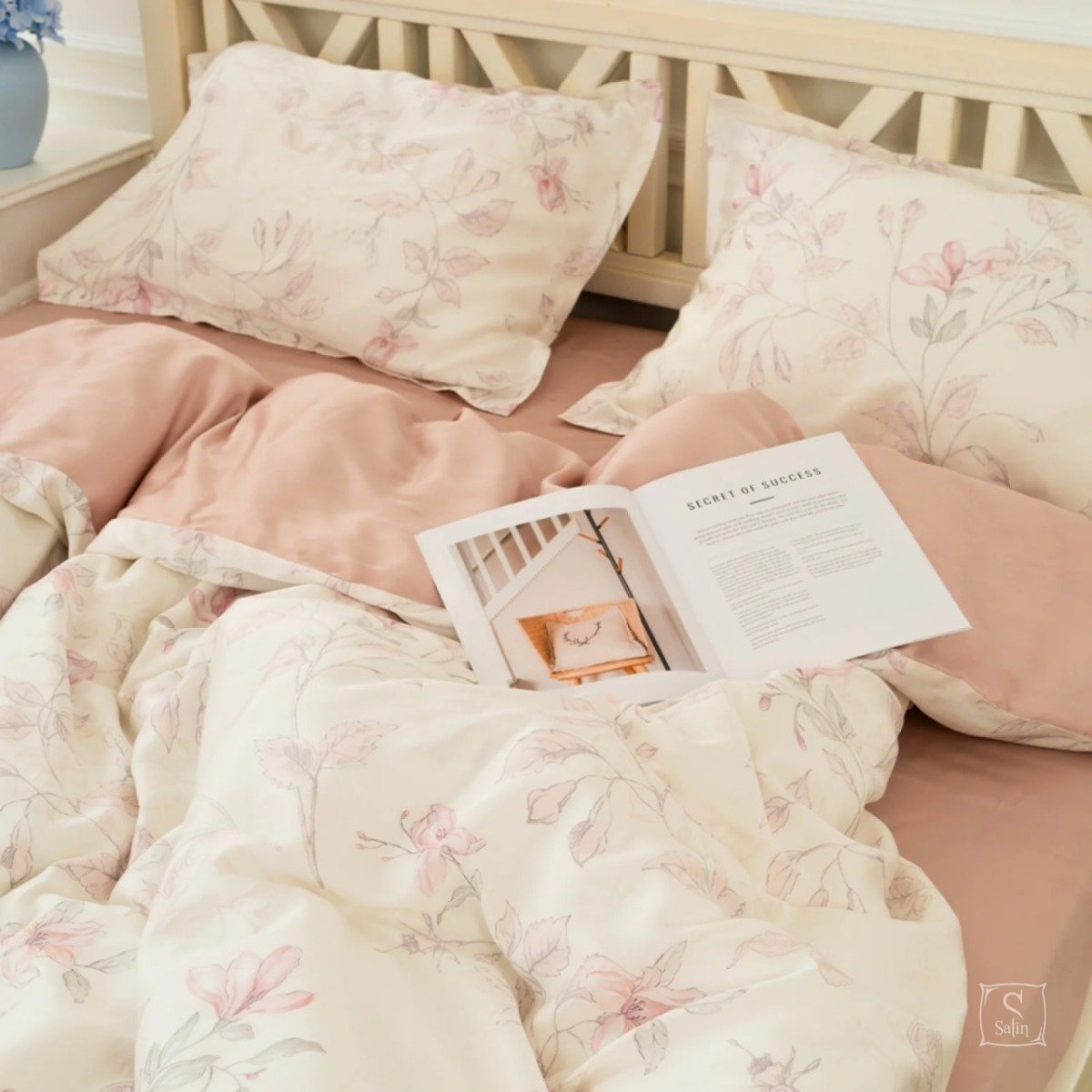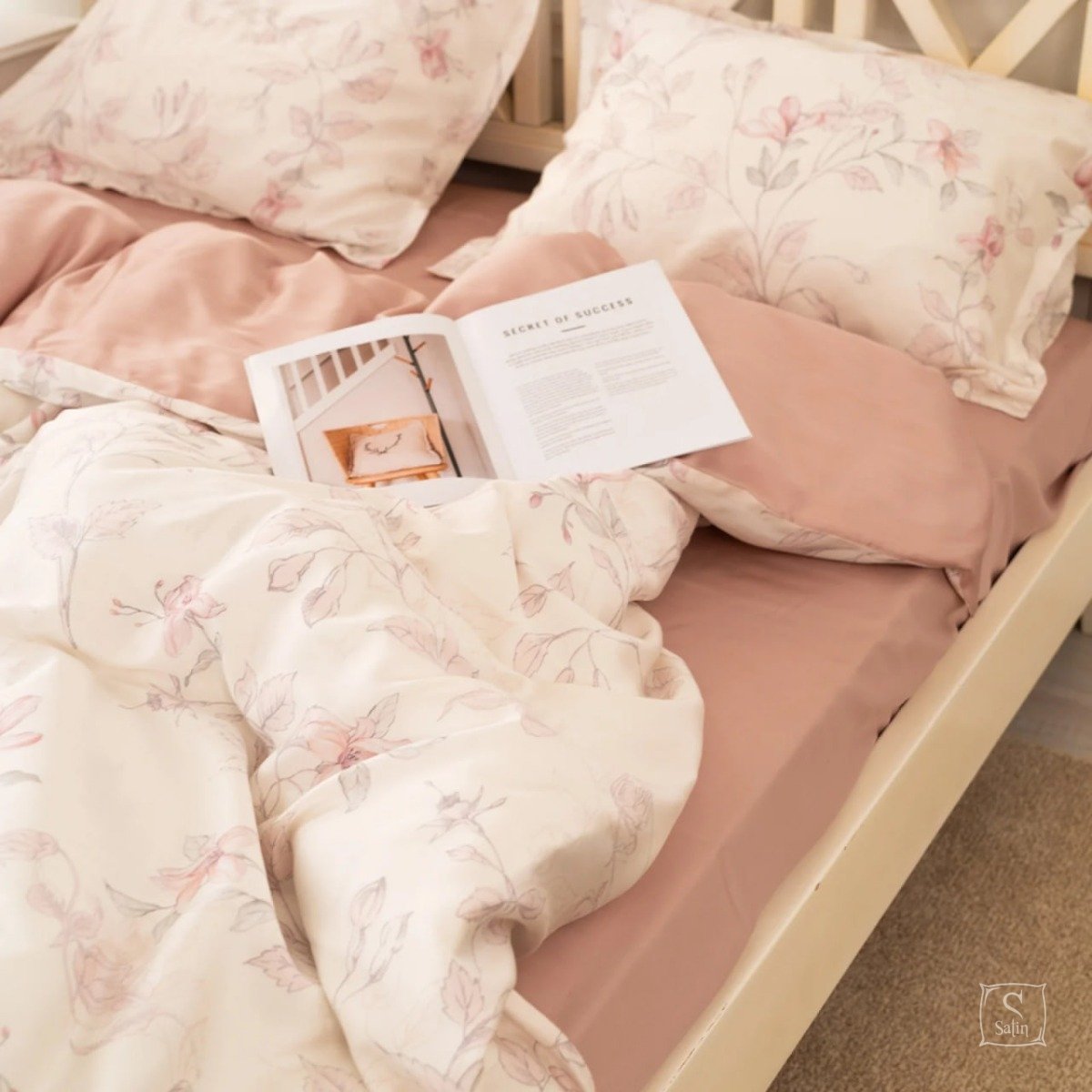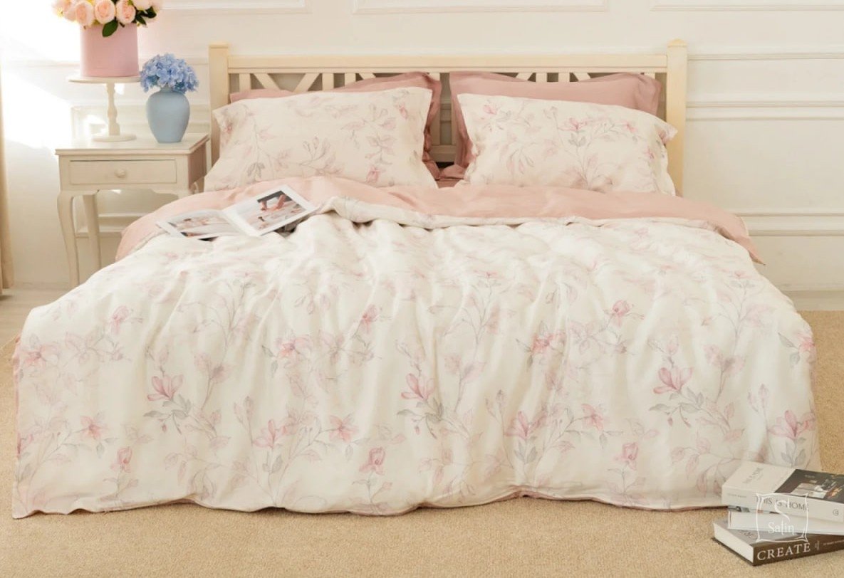 Комплект Тенсел Т-06 выполнен в розовых тонах с цветочным узором.