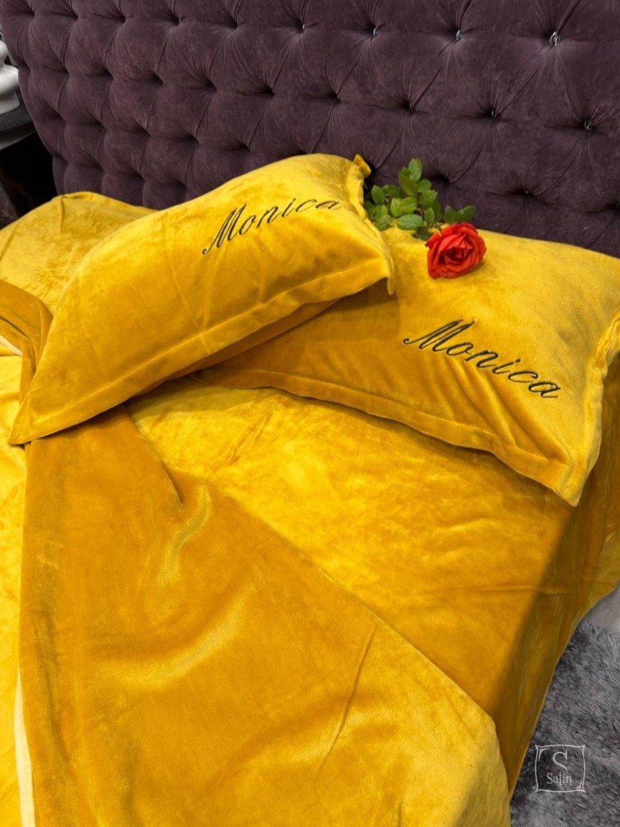Велюровое постельное белье Koloco Monica желтого цвета: комфорт и роскошь в каждом сне