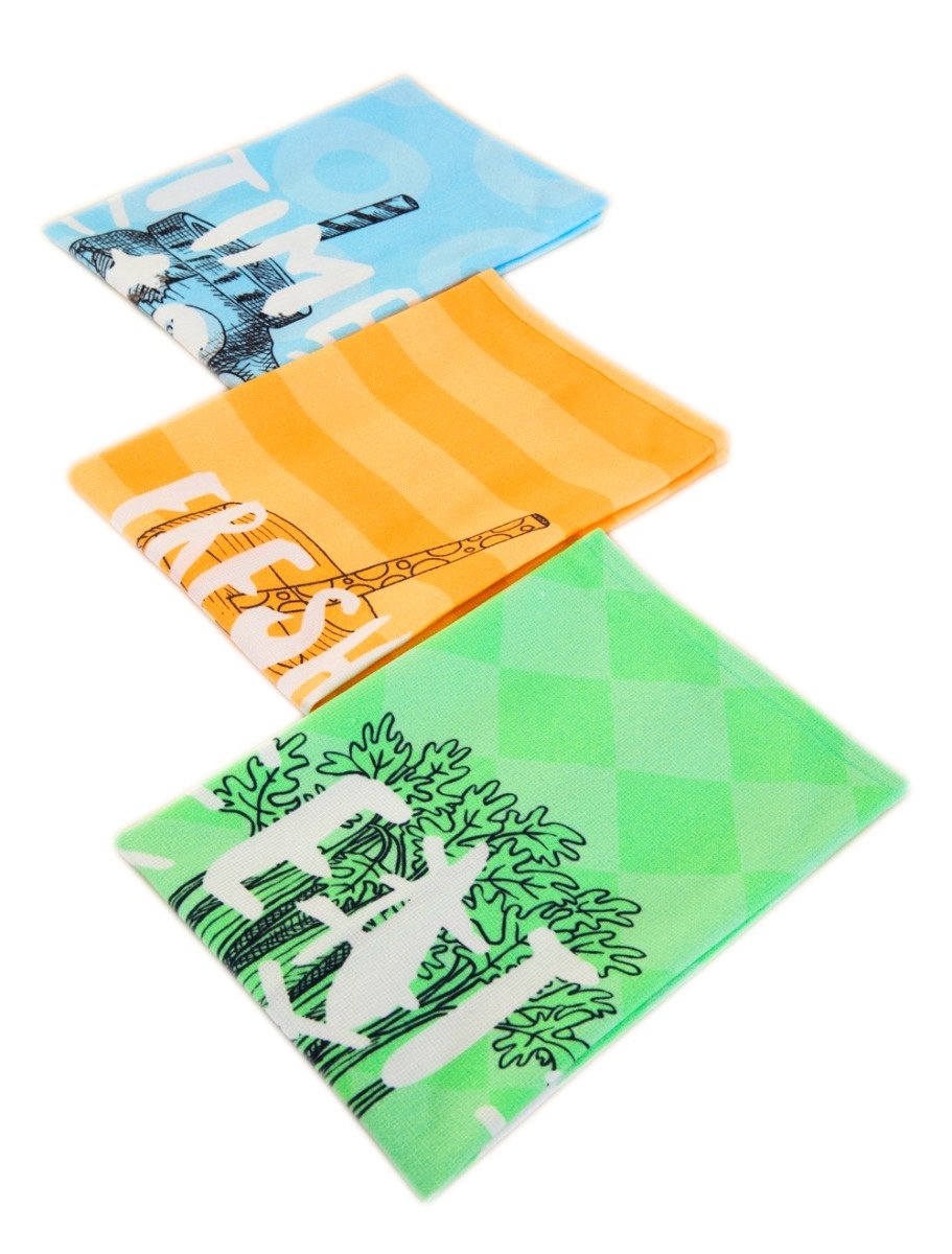 Набор из 3-х кухонных полотенец Maisonette Health изготовлен из 100% хлопка, что обеспечивает им высокую впитывающую способность и мягкость. Хлопковая ткань приятная на ощупь, отлично впитывает влагу и быстро сохнет. Полотенца выполнены в разный цветах с рисунками и надписями кухонной тематики.