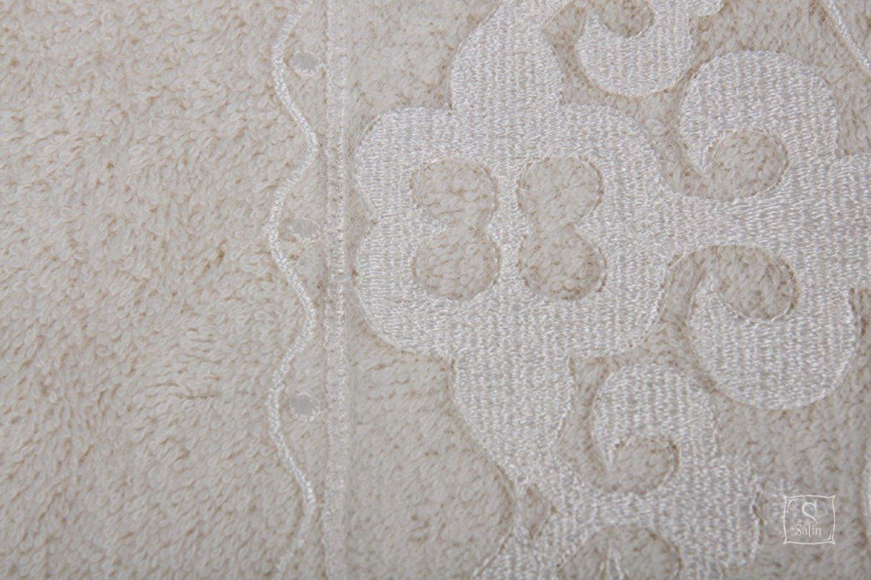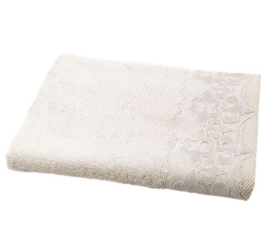 Полотенце Damask от турецкой ТМ Maxstyle выполнено в однотонном кремовом цвете, украшено кружевом.