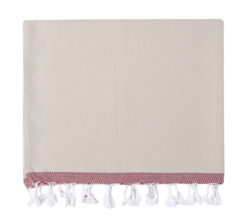 Пляжное полотенце Barine Pestemal Basak Beige-Marsala выполнено из 100% хлопка. Красивое полотенце в бежево-темно-красных тонах с мелким узором, украшено белой бахромой.