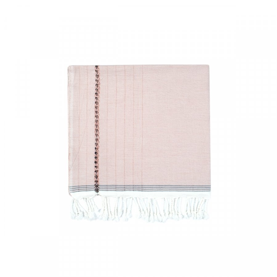 Пляжное полотенце Irya Pestemal Carmen pudra из 100% хлопка выполнено в розовых тонах с узором полоски, украшено бахромой.