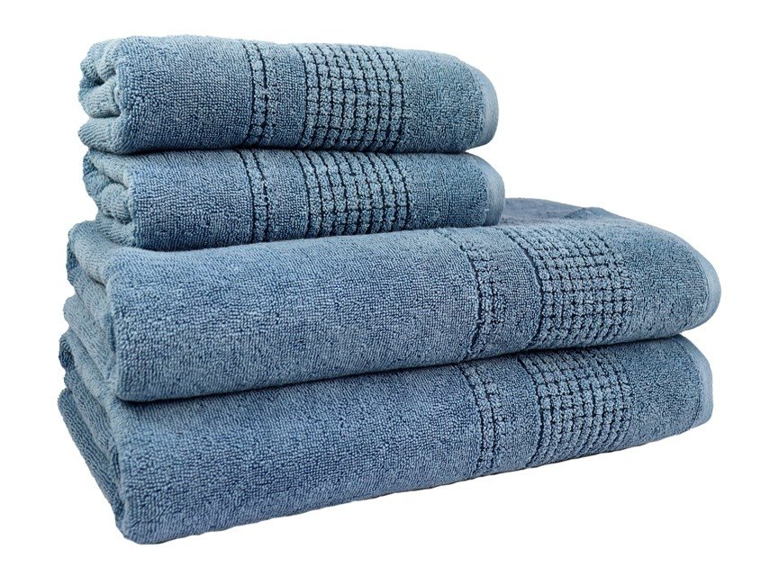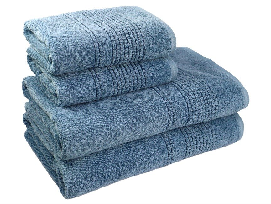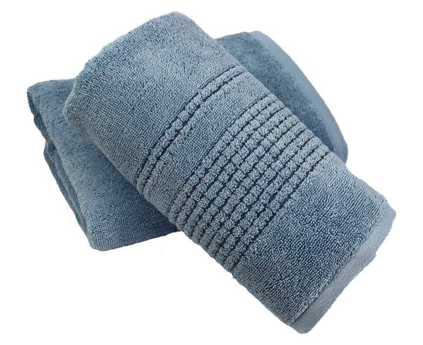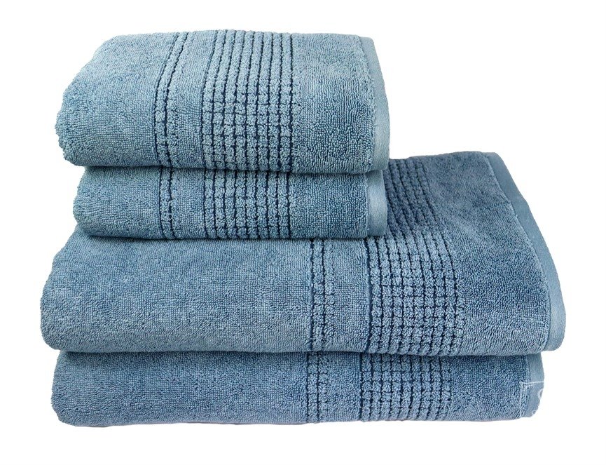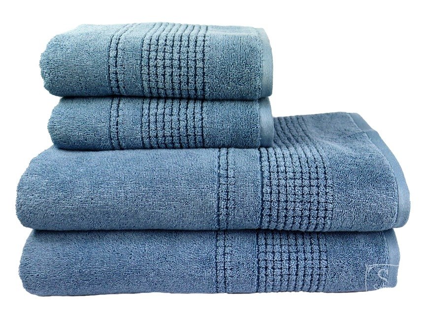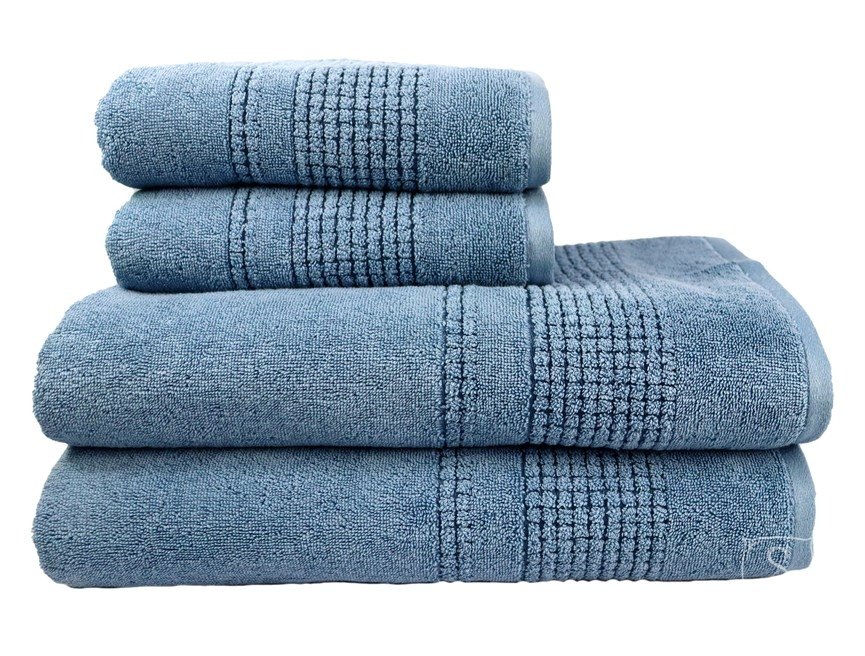 Полотенце Hobby Box синего цвета - однотонное махровое полотенце с классическим бордюром из плотной махры - 600 г/м2