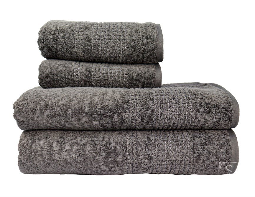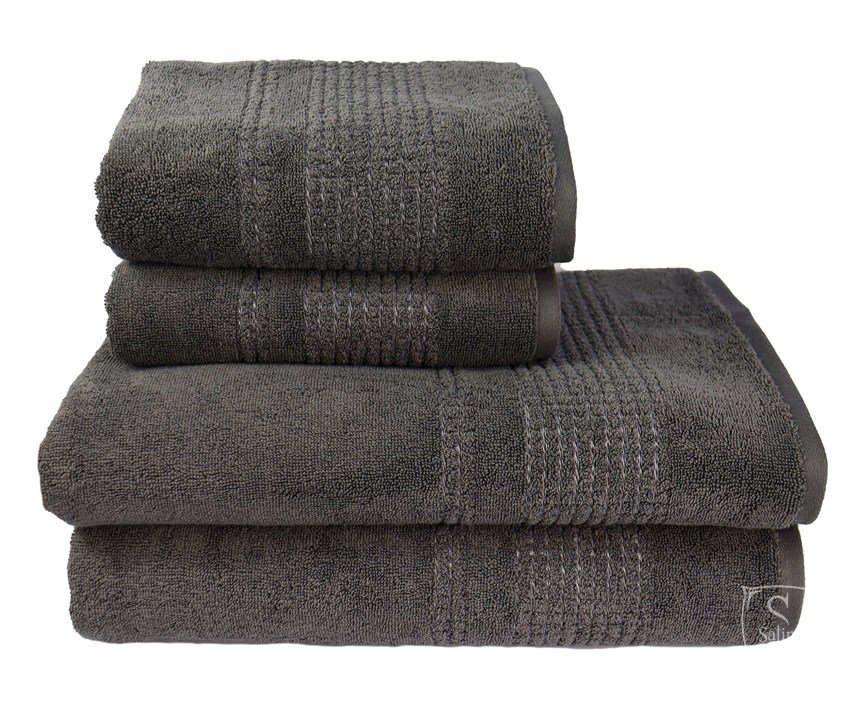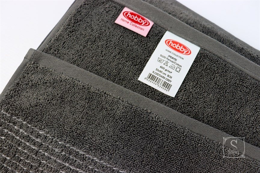Полотенце Hobby Box темно-серого цвета - однотонное махровое полотенце с классическим бордюром из плотной махры - 600 г/м2