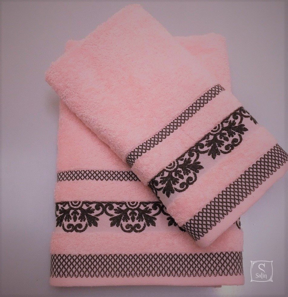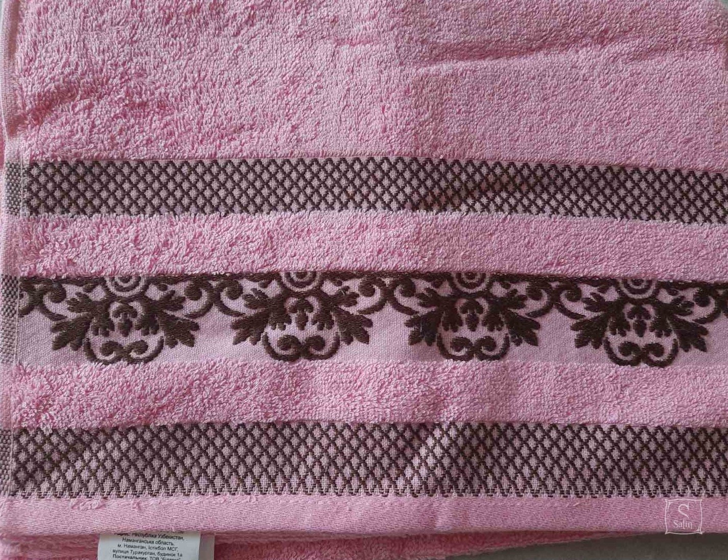 Полотенце Аиша КОБОРТМА розовое 5018 - однотонное махровое, украшено жаккардовым бордюром, из плотной махры - 450 г/м.