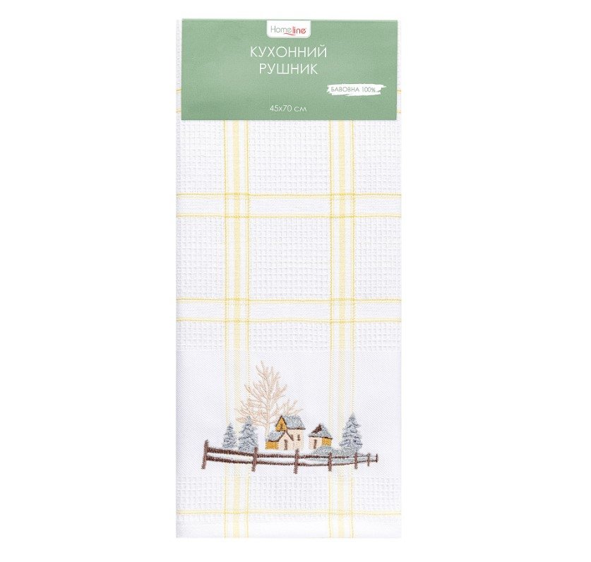 Добавьте уют и праздничное настроение на вашу кухню с вафельным полотенцем Home Line. Элегантный клетчатый узор в желтых тонах и нежная вышивка с изображением домиков придают ему стильный и уютный вид.
