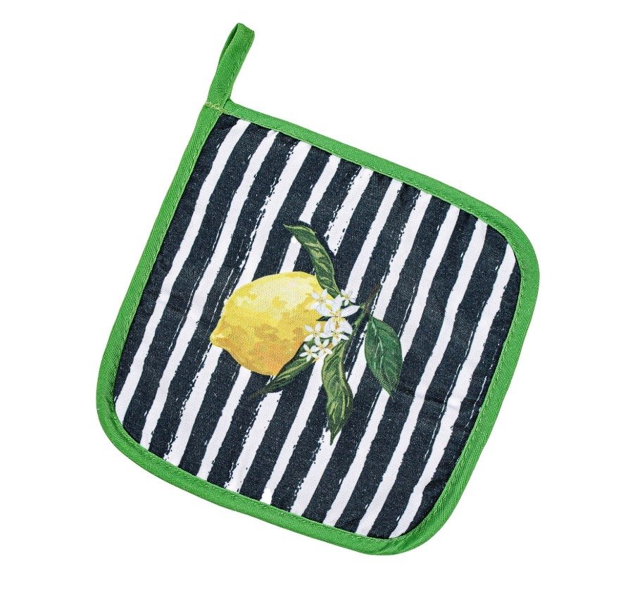 Прихватка для кухни Home Line Лимон выполнена из габардина в разноцветно-зеленых тонах, с принтом лисон.