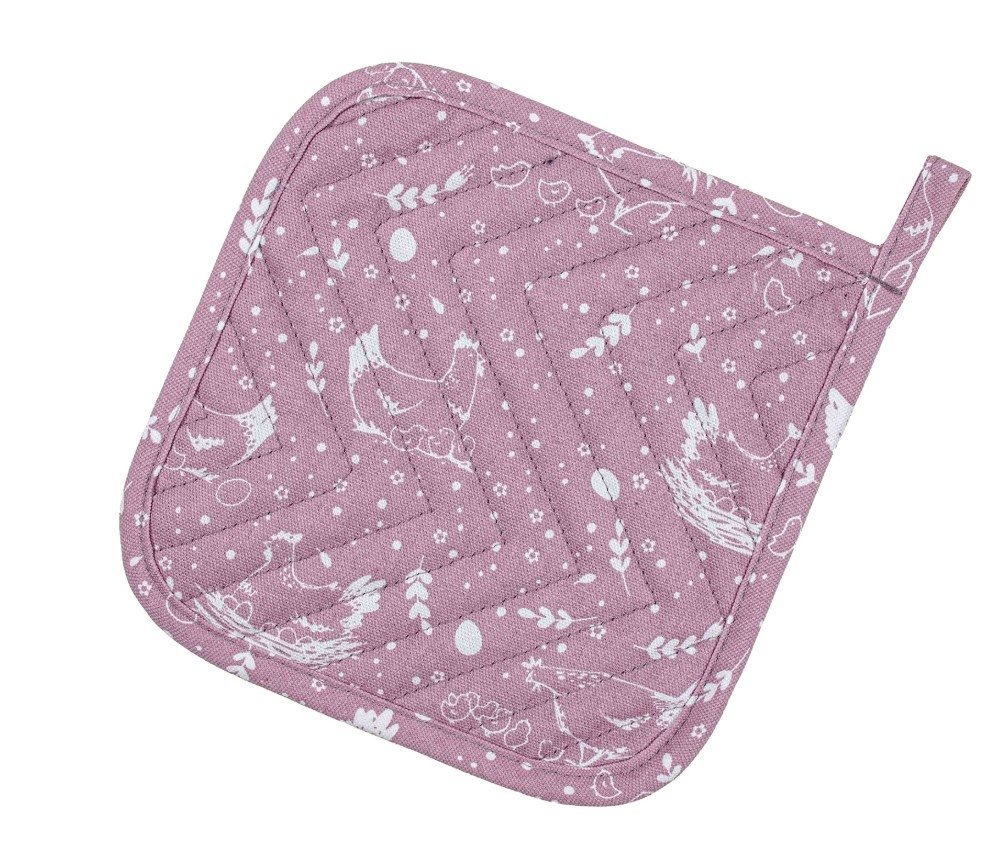 Прихватка Home Line Курочки цвета лиловый/махровая сирень выполнена с узором курочки. Станет верным помощником и стильным аксессуаром на кухне.