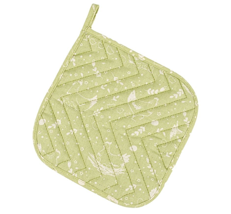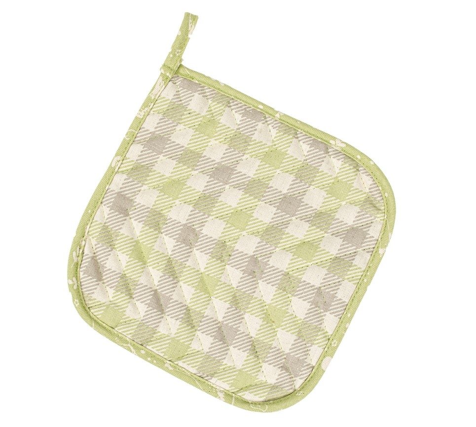 Прихватка Home Line Курочки світло-зелений/Клітинка оливково-бежевий выполнена с узором курочки. Станет верным помощником и стильным аксессуаром на кухне.