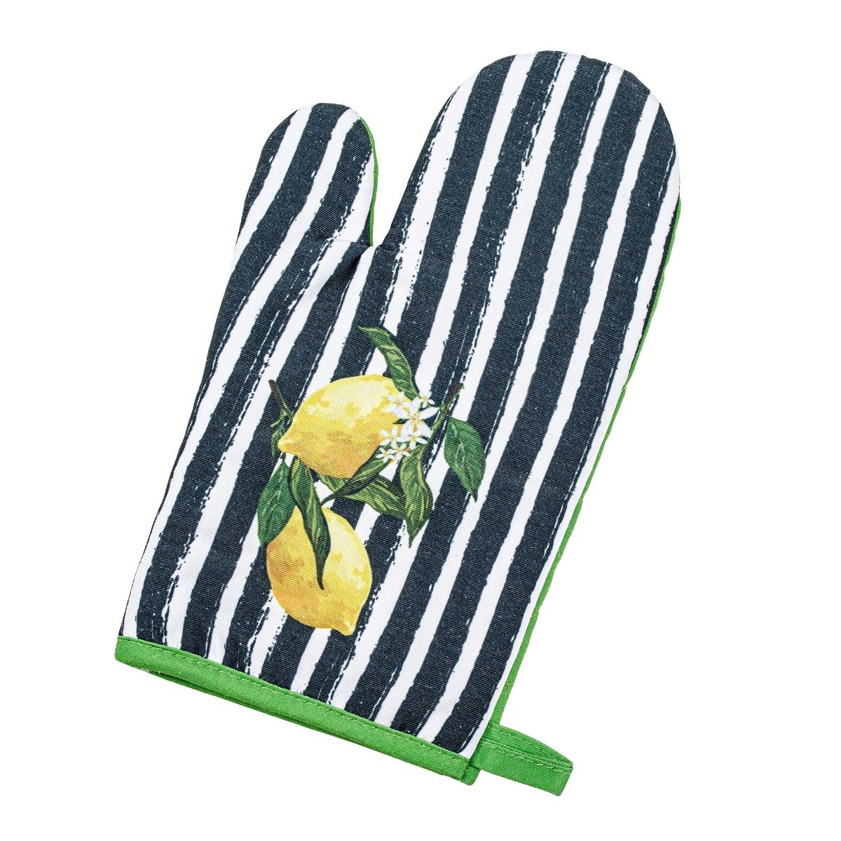 Рукавица для кухни Home Line Лимоны выполнена из габардина с принтом лимоны и полоска.