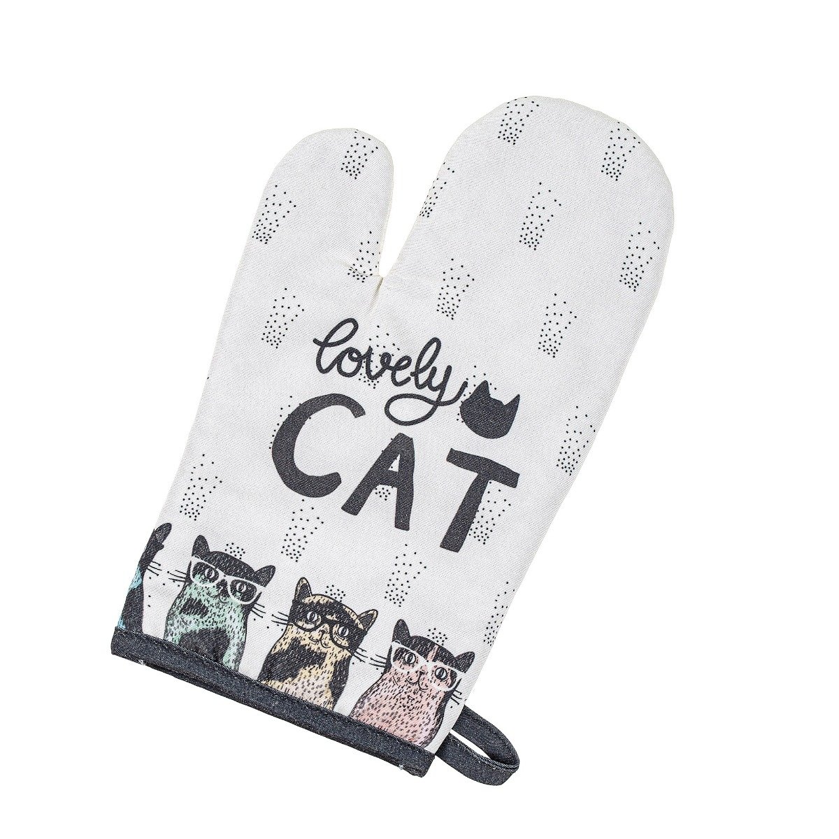 Рукавица для кухни Home Lovely Cat выполнена из габардина с принтом котики и надписи.