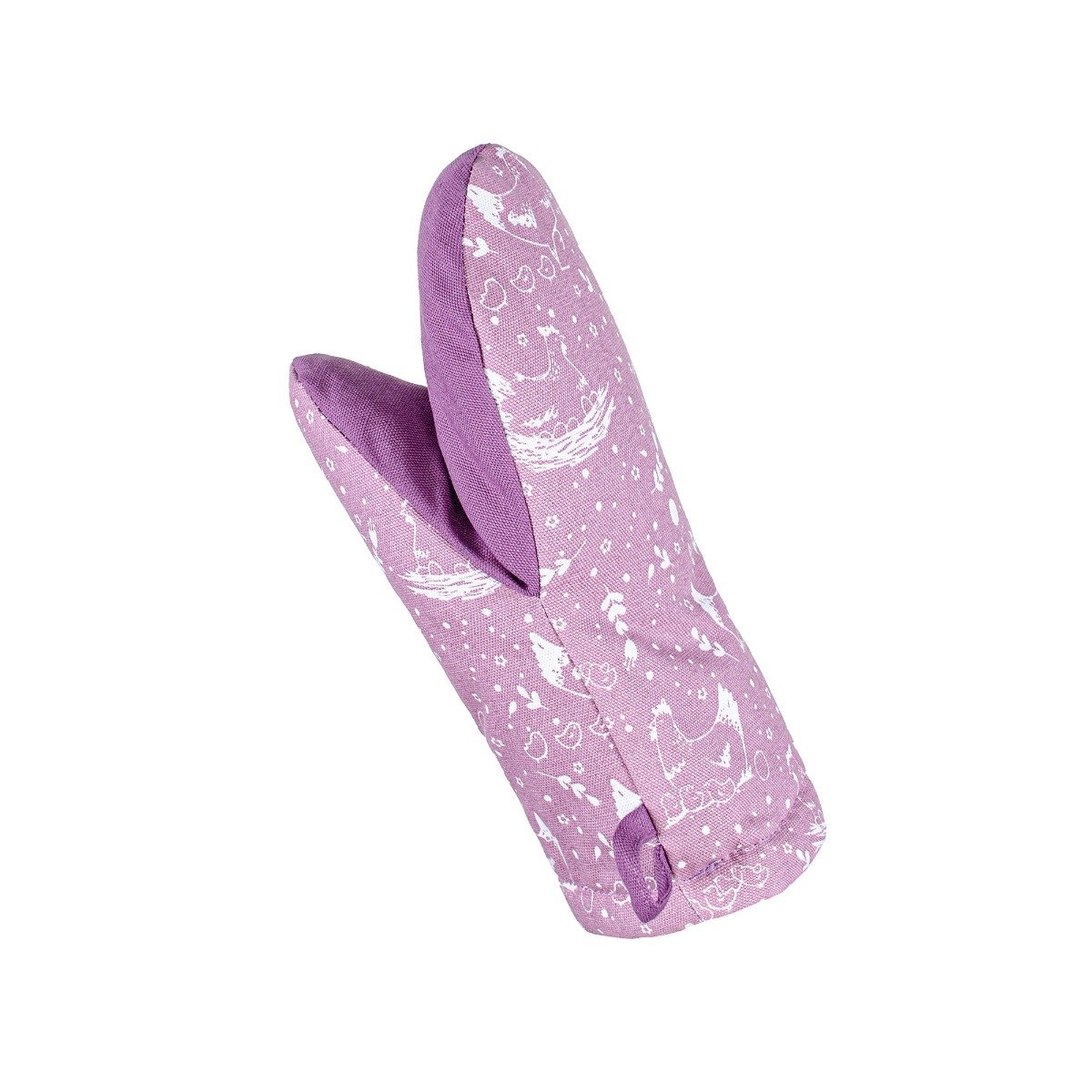 Рукавичка Home Line Курочки цвета лиловый/махровая сирень с рисунком курочки станет верным помощником и стильным аксессуаром на кухне.