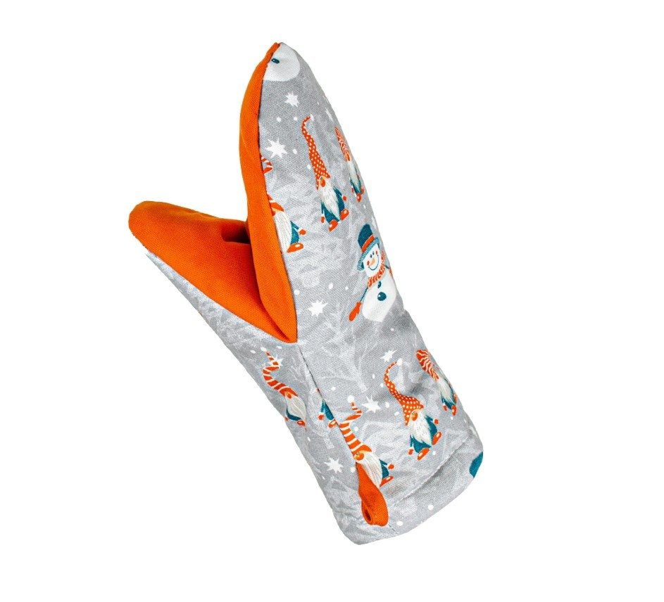 Рукавичка Home Line Гномы серого цвета с рисунком цгномы и снеговики станет верным помощником и стильным аксессуаром на кухне.