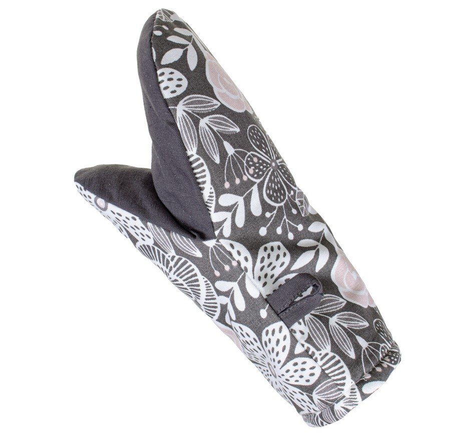 Рукавичка Home Line Квіти декоративні графітово-фрезові/графіт с рисунком цветы станет верным помощником и стильным аксессуаром на кухне.