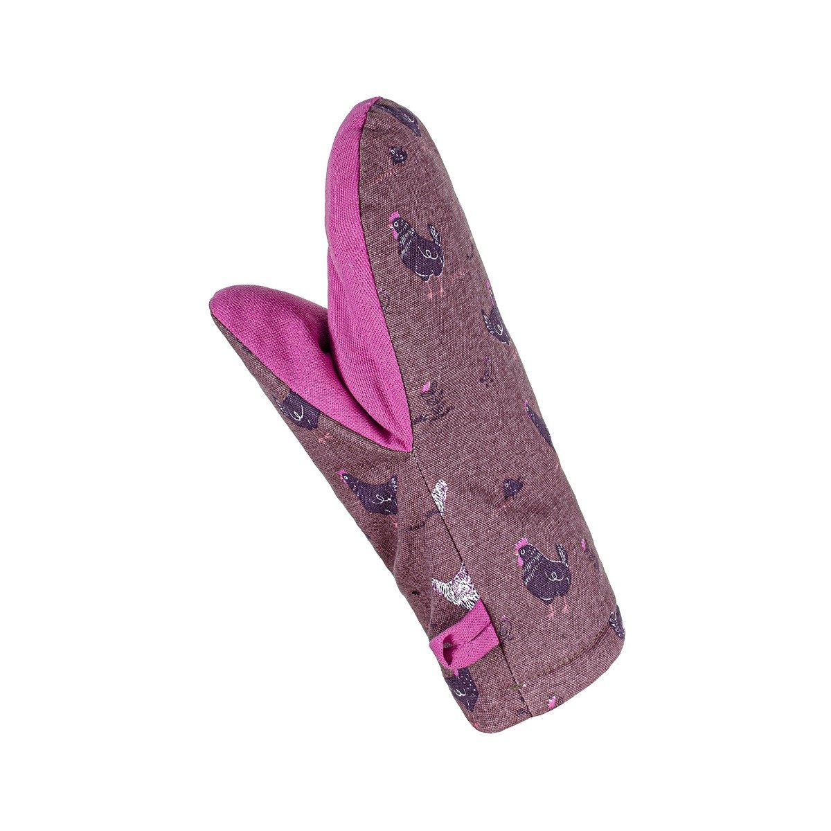 Рукавичка Home Line Прогулянка з курчатами цвета бордовый/фуксия с рисунком курочки и цыплята станет верным помощником и стильным аксессуаром на кухне.