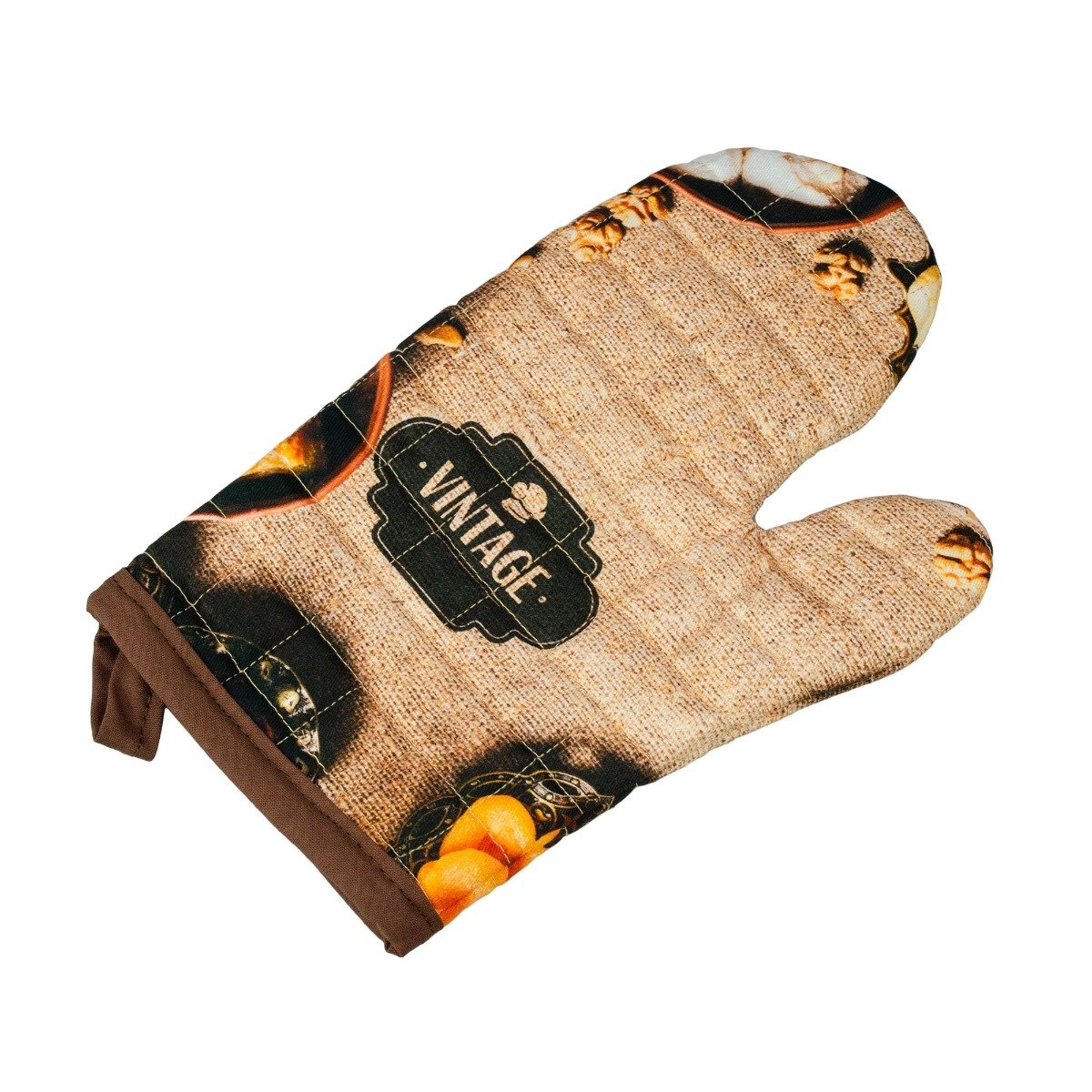 Рукавичка Home Line Винтаж с надписью "VINTAGE" и рисунком кухонной тематики станет верным помощником и стильным аксессуаром на кухне. Изготовлена из 100% хлопка.