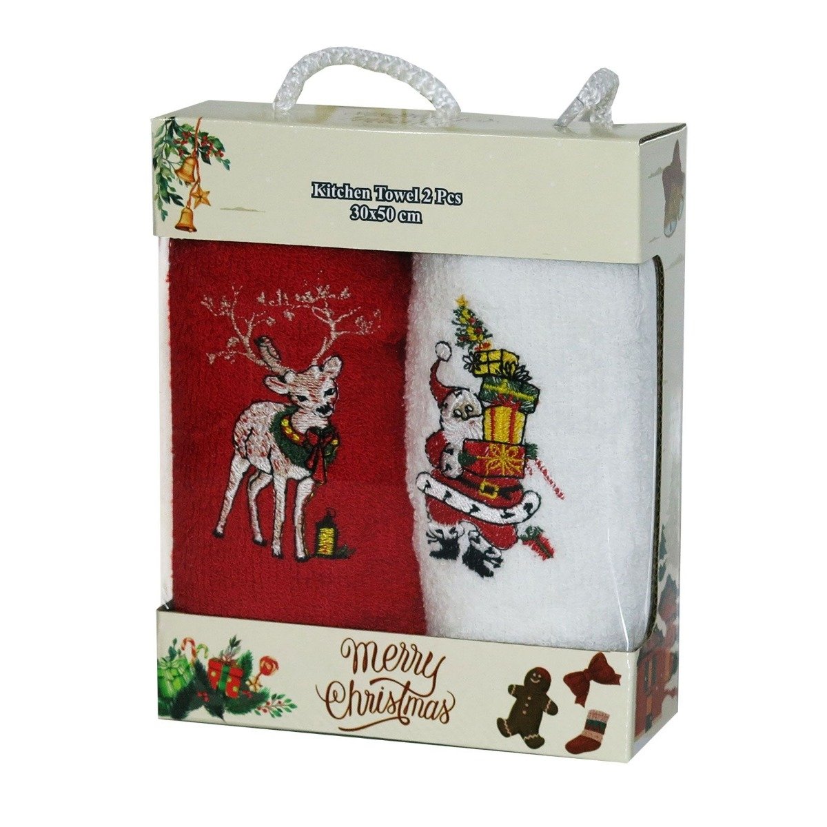 • Новогодний подарочный набор Santa 2026 10 от турецкой ТМ Gulcan состоит из двух махровых кухонных полотенец из 100% хлопка.