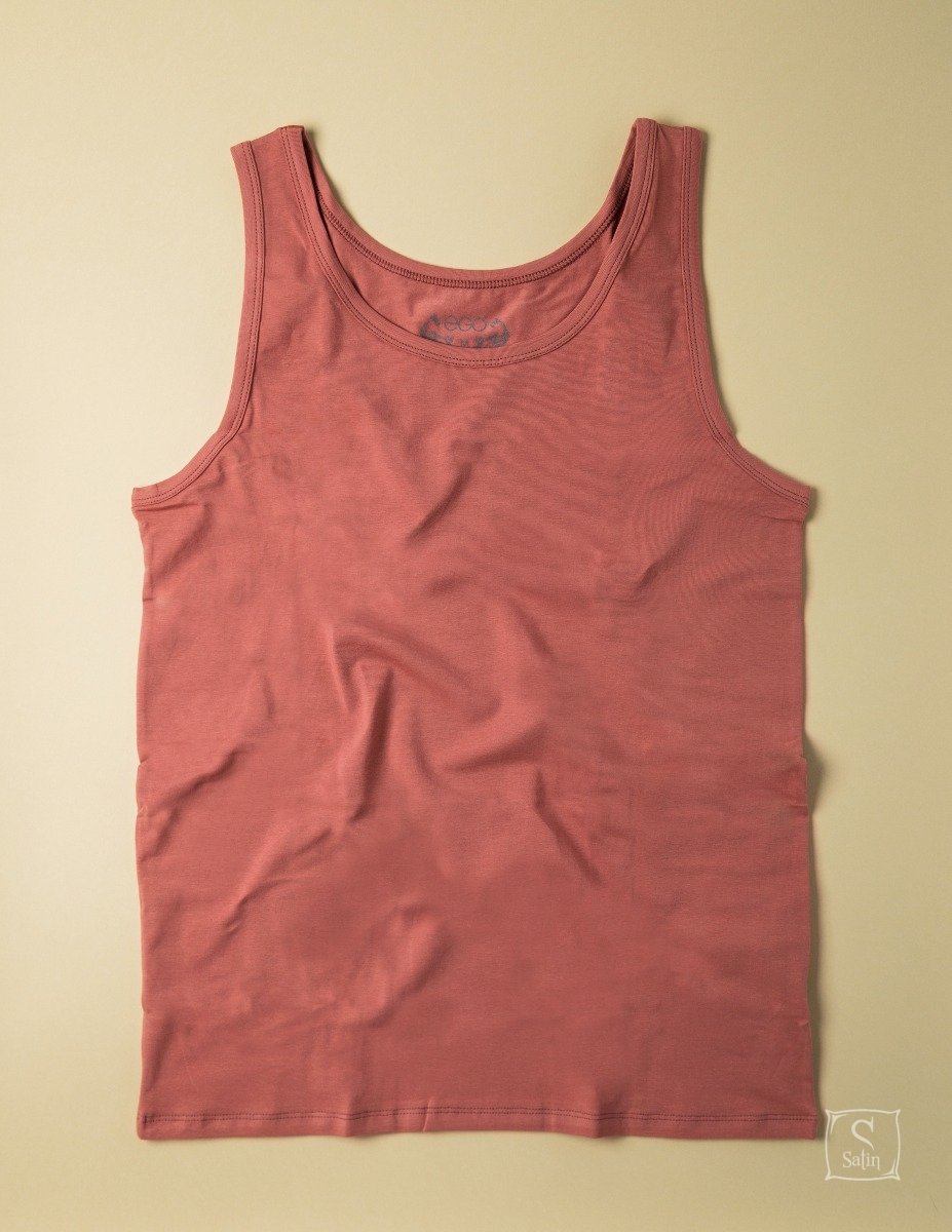 Майка с широкими брителями полуприталенного силуэта.