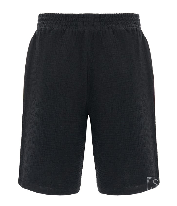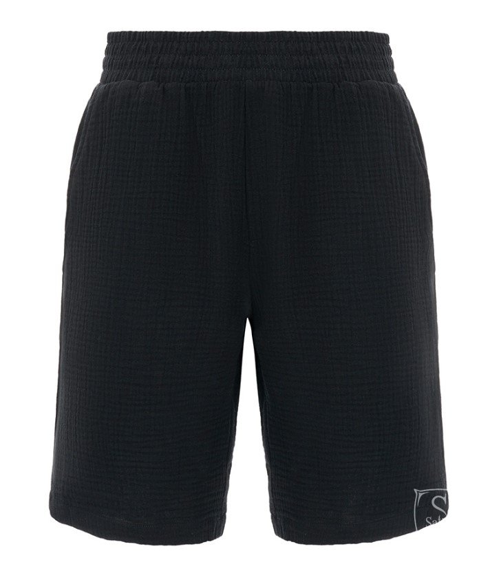 Черный цвет шорт придает им универсальность и делает их легкими для сочетания с другими элементами гардероба. Классический черный оттенок всегда остается актуальным, он подходит для разных случаев и стилей. Черные шорты из муслина German Volf можно легко комбинировать как с яркими, так и с нейтральными оттенками футболок, рубашек или поло, создавая стильные и современные образы.
