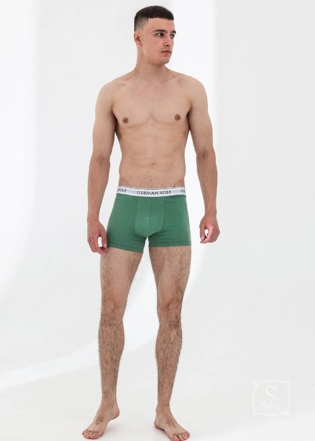 Зеленый цвет этих боксеров придает им свежесть и индивидуальность. Это смелый, но сдержанный выбор, который подчеркнет ваш стиль и придаст гардеробу разнообразие. Зеленый оттенок выглядит оригинально и современно, при этом оставаясь практичным и универсальным. Эти трусы прекрасно сочетаются с любой одеждой и остаются незаметными под брюками, джинсами или спортивными брюками, обеспечивая комфорт в любых ситуациях.