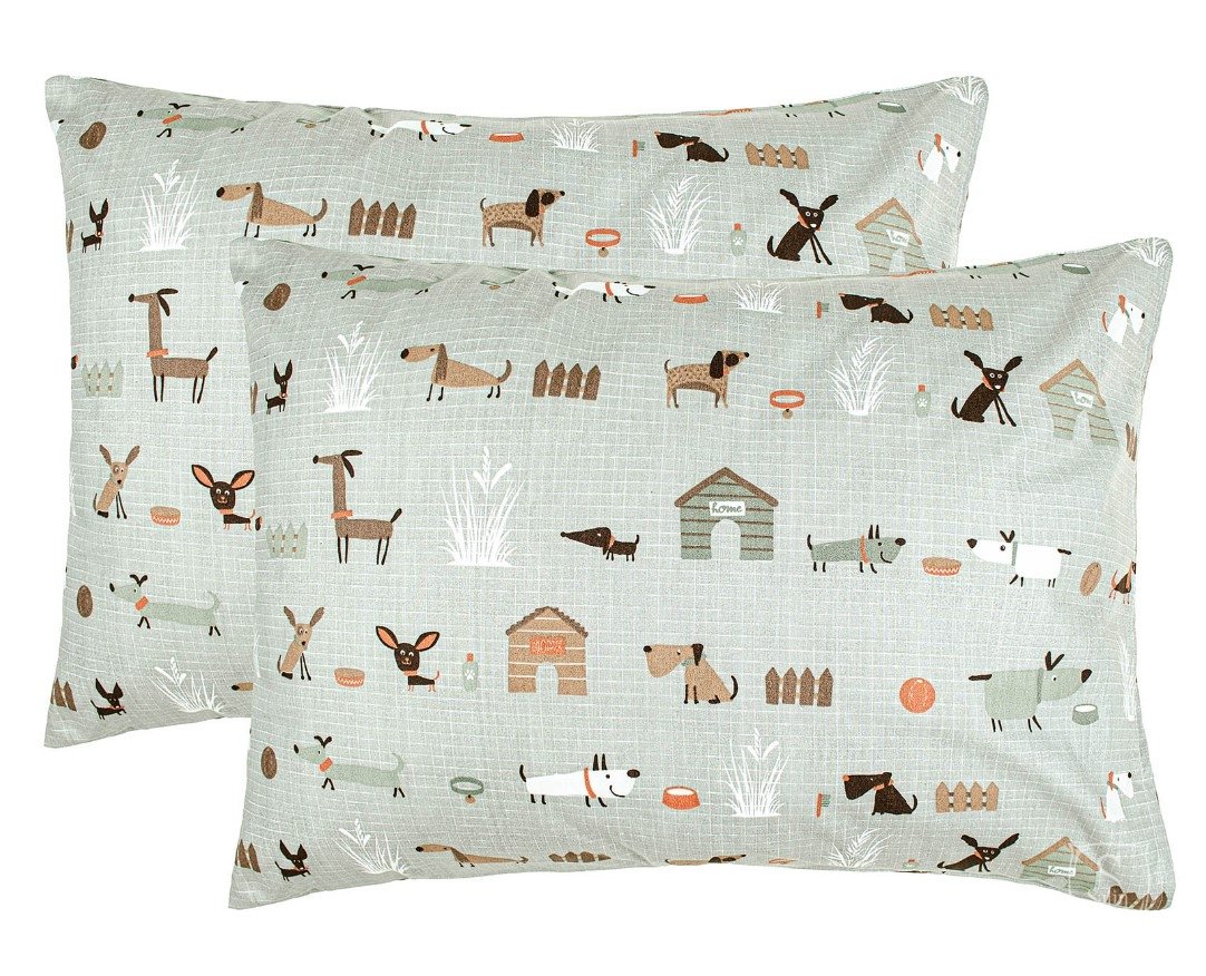 Набор наволочек Home Line Гав-гав світло-сірий состоит из 2-х наволочек, выполненных из бязи (100% хлопка) плотностью 120 г/м², с принтом собачки.