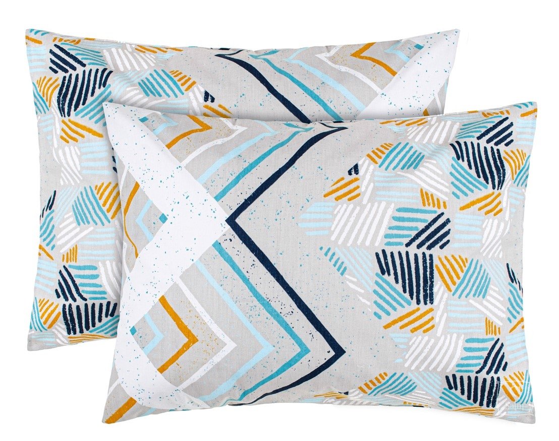 Набор наволочек Home Line Захопленість бежево-бірюзовий состоит из 2-х наволочек, выполненных из бязи (100% хлопка) плотностью 140 г/м², с геометрическим принтом.