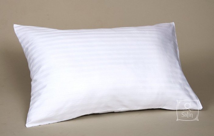 Набор наволочек Viluta из однотонного белого сатина с жаккардовой полосой.