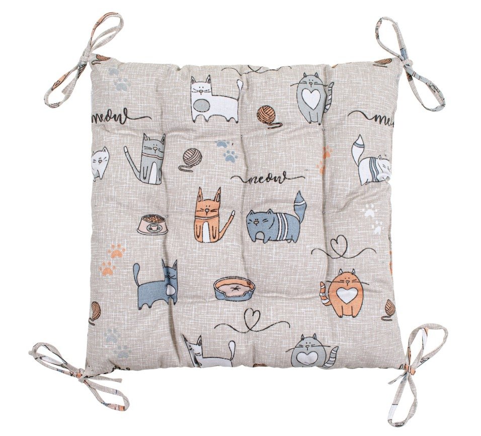 Подушка с завязками на стул Home Line. Кот на кухне бежевого цвета