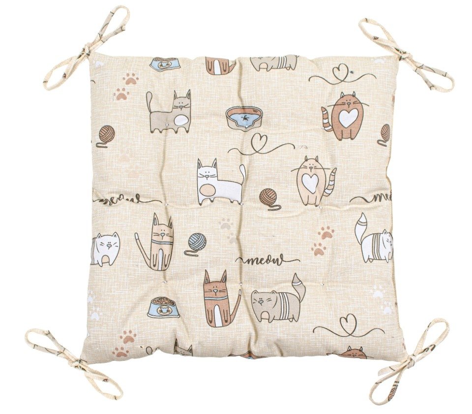 Подушка с завязками на стул Home Line. Кот на кухне песочного цвета