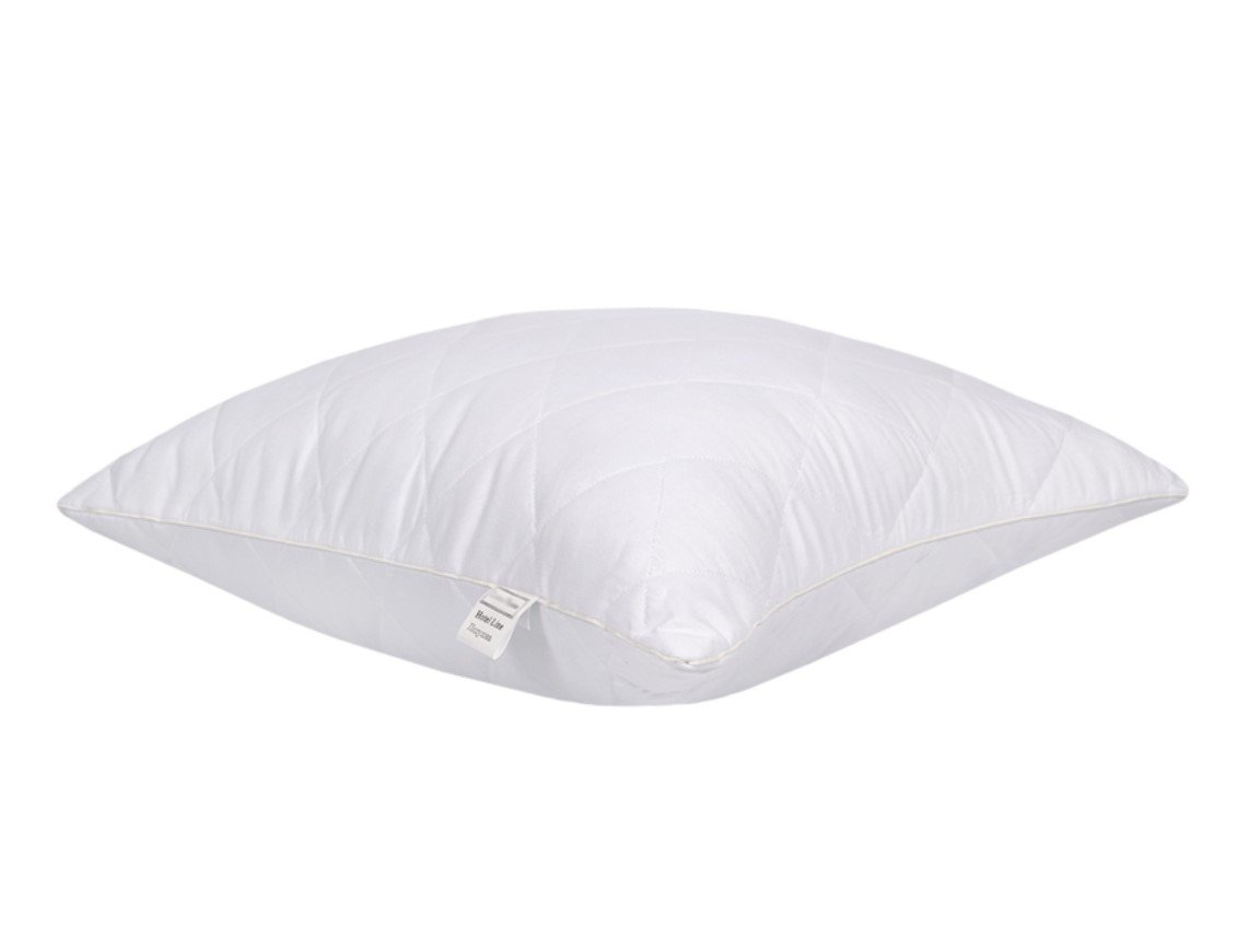 В качестве наполнителя используется антиаллергенное искуственное микроволокно, поэтому подушка имеет среднюю жесткость, оставаясь при этом достаточно высокой и упругой.