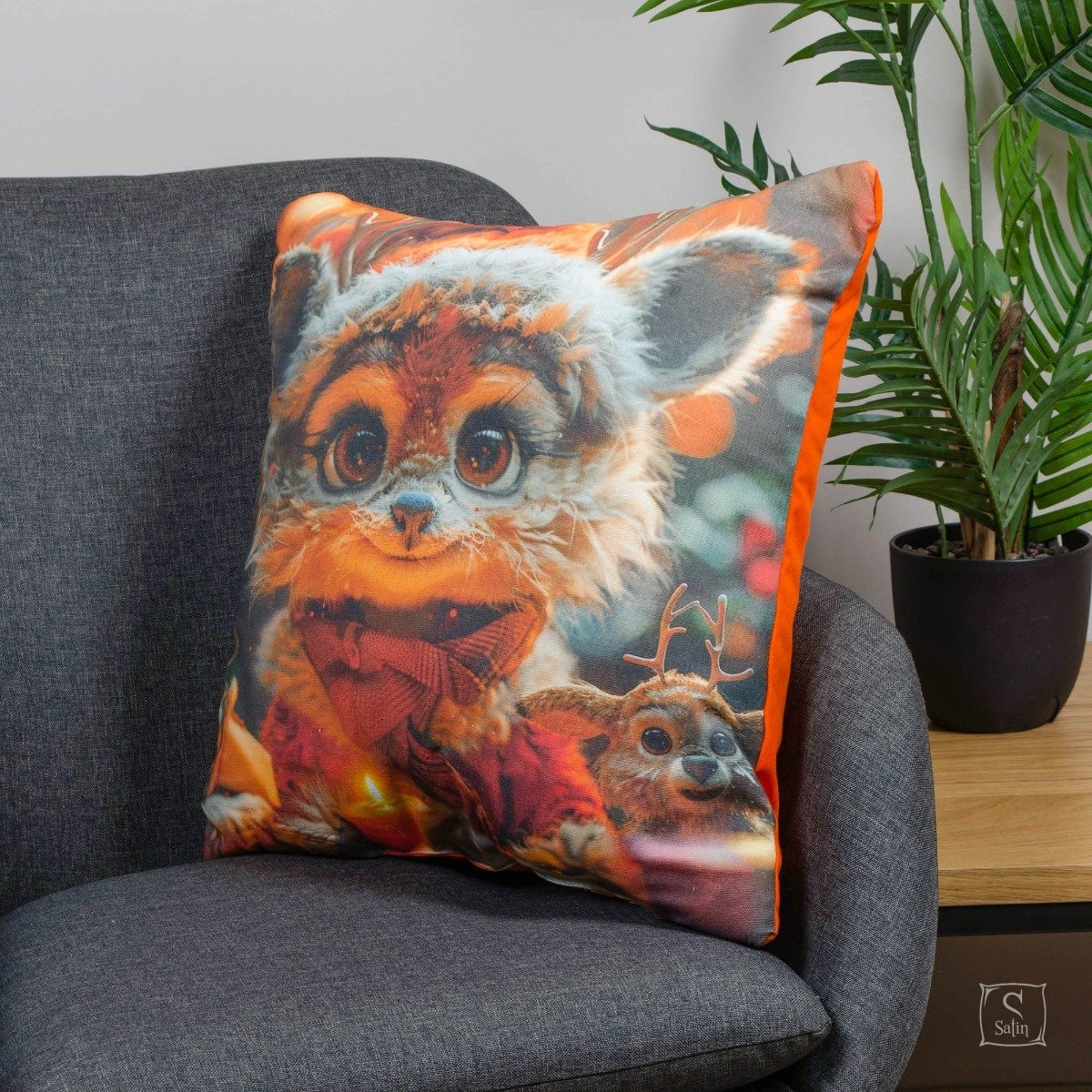 Подушка декоративная Home Line Лисеня зі свічкою - стильная и уютная подушка, которая прекрасно дополнит интерьер вашего дома. Подушка выполнена из качественной хлопковой ткани полупанама с легким антиаллергенным наполнителем, в оранжево-серых тонах, украшена оригинальным фотопринтом лисенок со свечой.