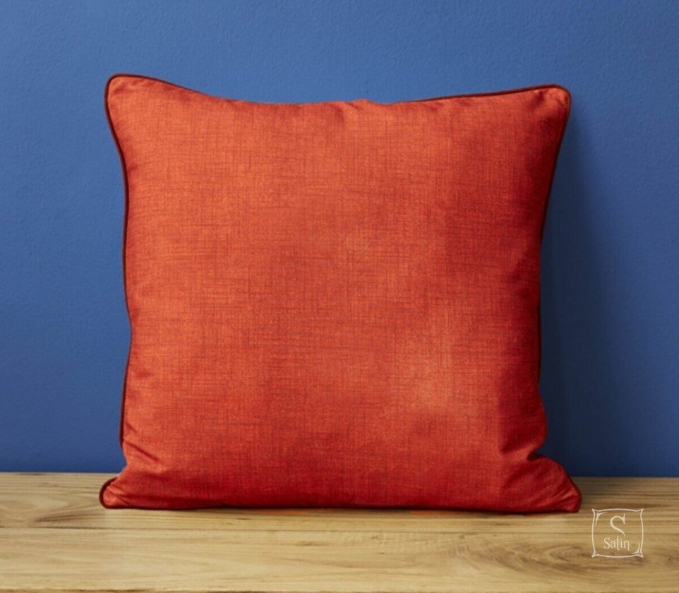 Подушка выполнена из качественной синтетической ткани красного цвета с кантом, с легким антиаллергенным наполнителем. Чехол на молнии, его можно легко снять и постирать.