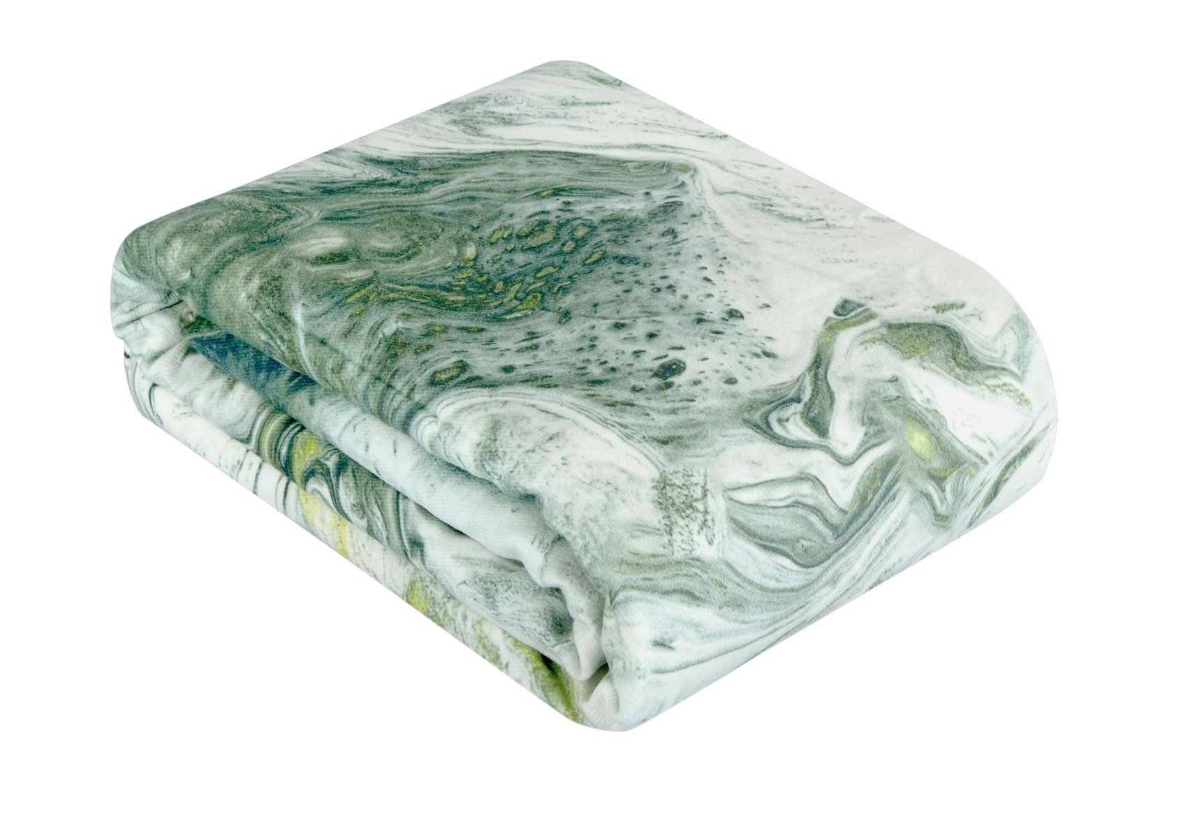 Плед Marble изготовлен из акрила - практичен в эксплуатации, держит форму, не растягивается и не садится, структура полотна остается гладкой после нескольких лет использования. Оригинальное исполнение данного изделия делает его привлекательным и очень удобным. Плед с напечатанным принтом в виде мраморных разводов серо-зеленого цвета, украшен бахромой.