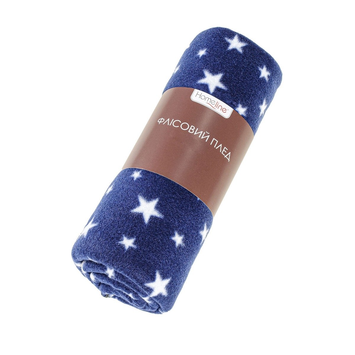 Теплый и мягкий флисовый плед Home Line Полар Зірки на синьому с рисунком белых звёзд на синем фоне.
