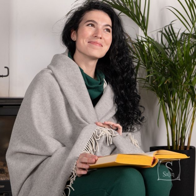 Мягкий и нежный кашемировый плед Love You однотонный светло-серого цвета.